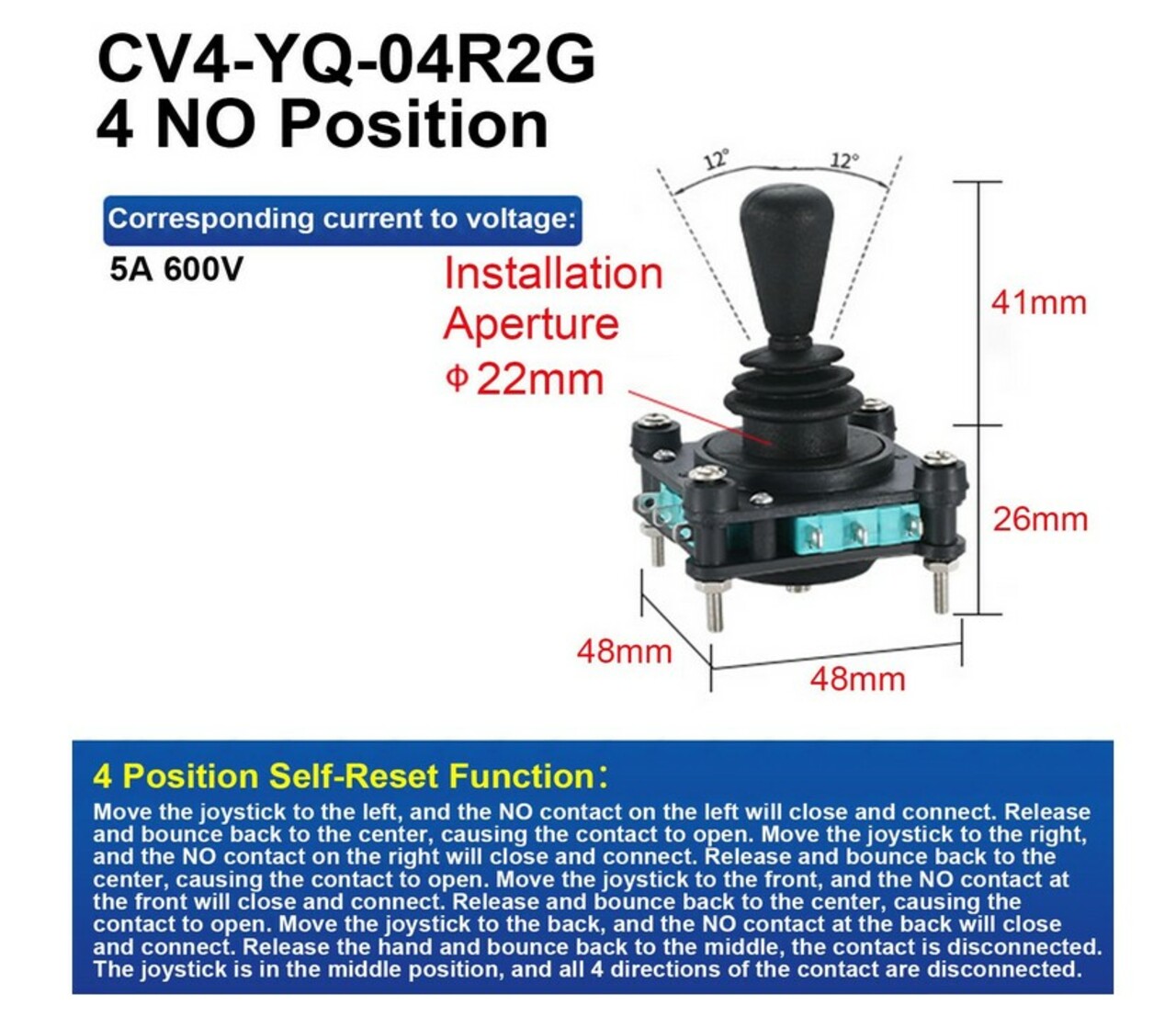 I have been looking on Amazon at the same joysticks. The ones I have looked at will all require a pair of external relays to control the bucket up/down and dump functions (4 relays total). At least some of the joysticks are also a single function at a time. I wouldn't be able to say lower the bucket and dump at the same time.