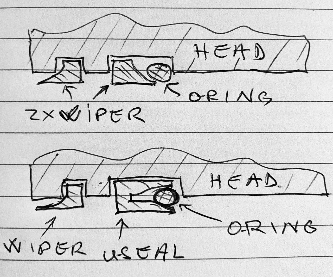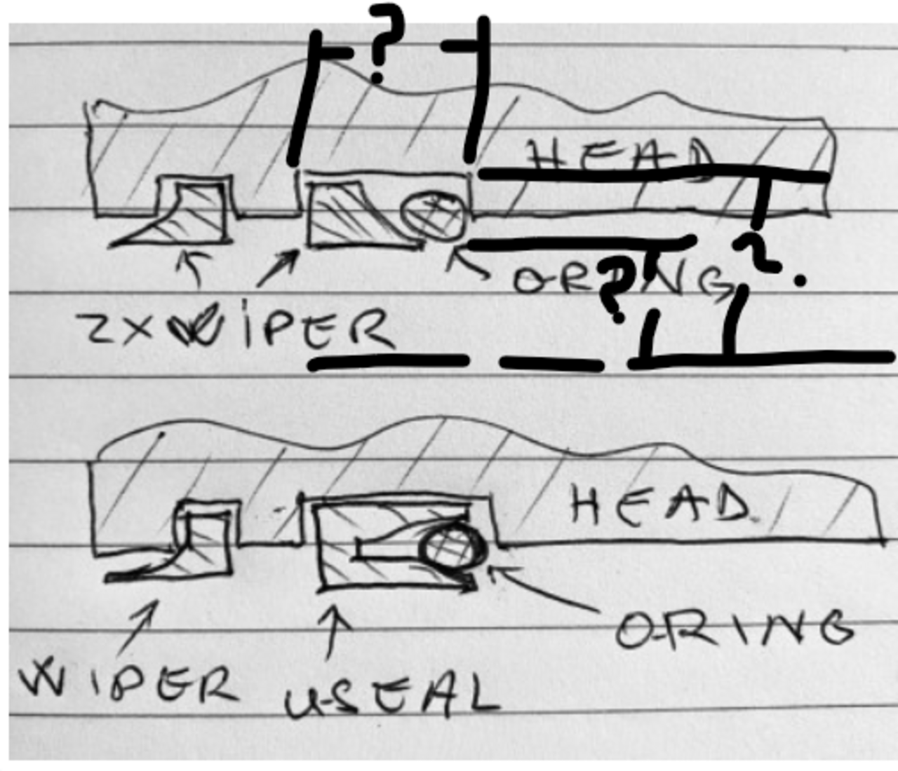 One question though. The original kit from Case has two wiper seals and an o-ring on the inner side of the head/gland. The wiper closer to the end of the cylinder is oriented with the "lip" towards the outside, fine. The other wiper has the lip towards the other end of the cylinder. When I opened the bucket cylinder I found instead of the wiper+o-ring a u-seal+ o-ring. From what I've been reading, a u-seal or u-seal+o-ring is superior to a wiper+o-ring. The cost difference is not much, just a few dollars. Should I stay with wiper+o-ring or use u-seal in this position? What do you think?