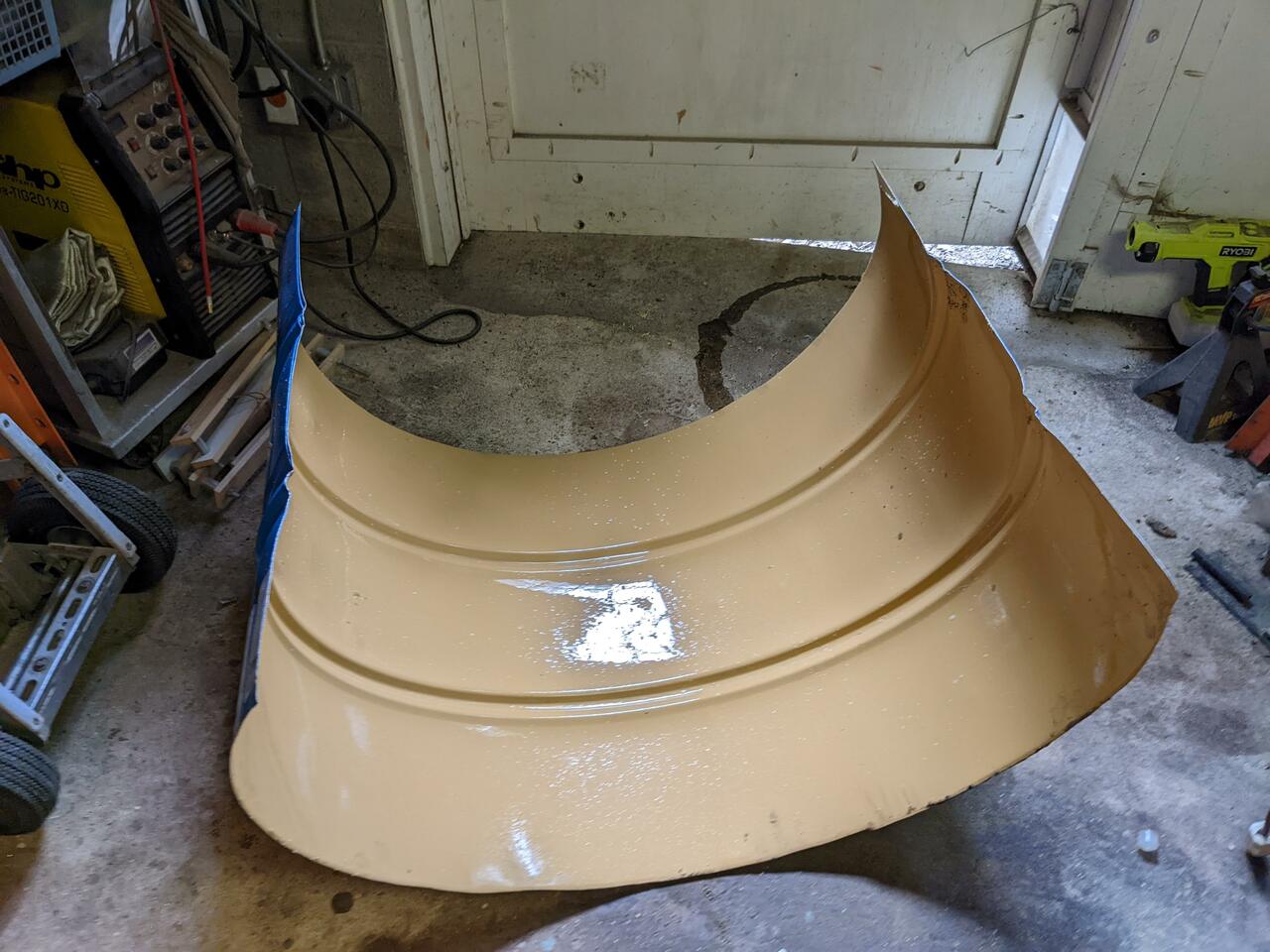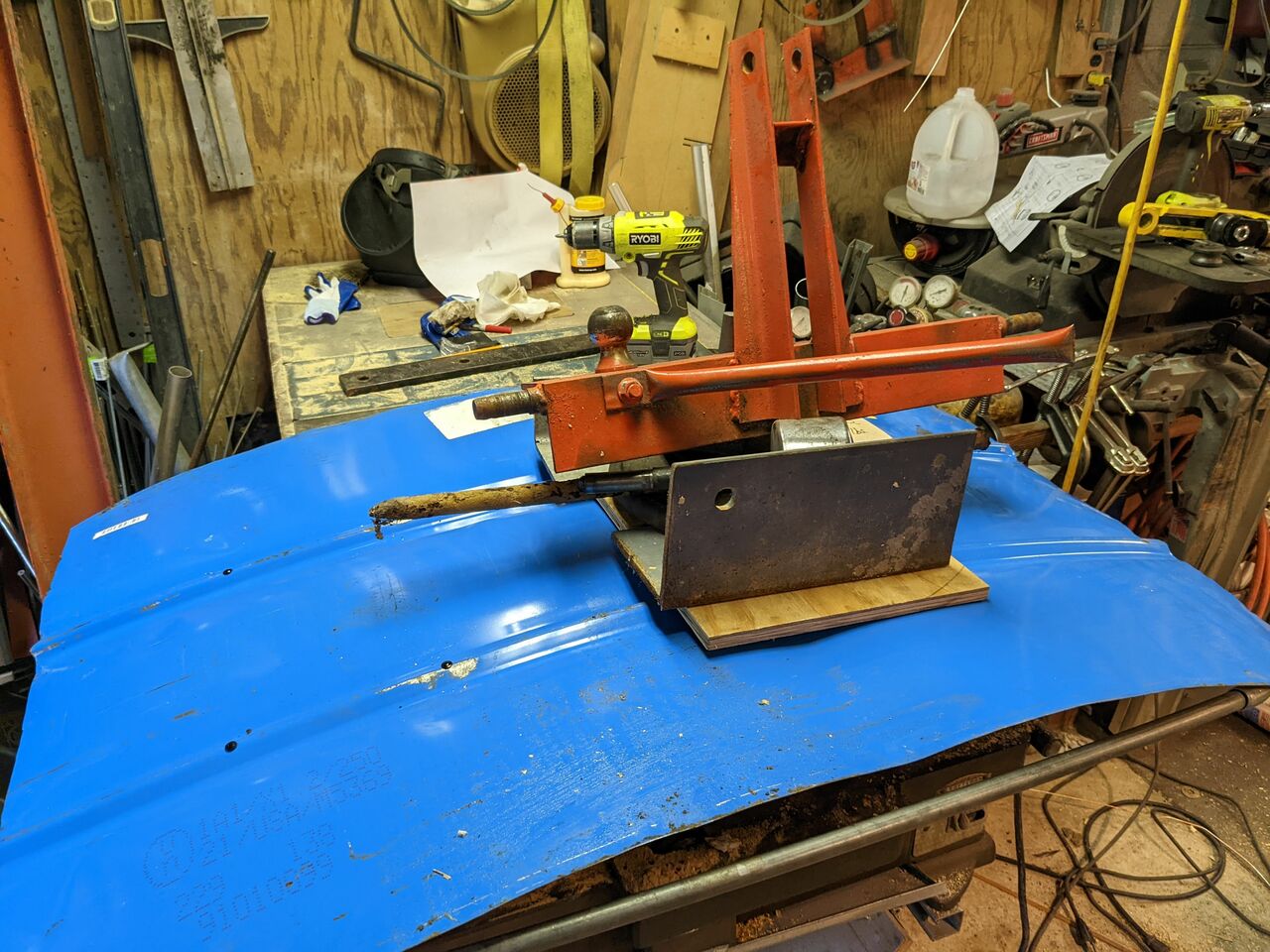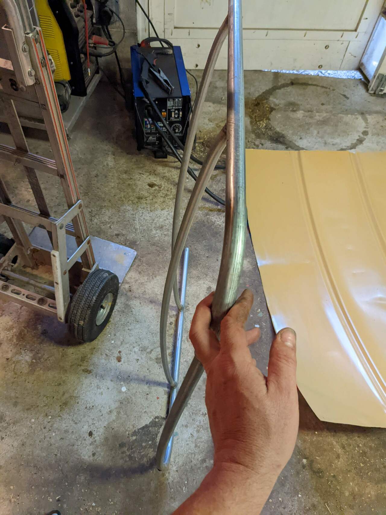 So I ran some 1/2" EMT conduit through the pipe roller and gave it the desired arc. And then cut and welded that into a frame.