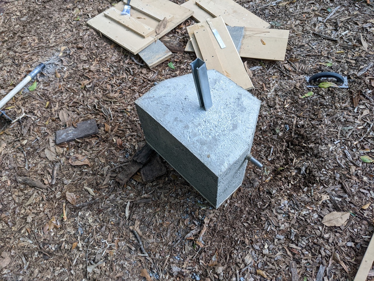I chose to fill it to 5 bags, 300 lbs of dry concrete, plus a bit of retained moisture plus the steel, makes it right about 325 lbs of counterweight.