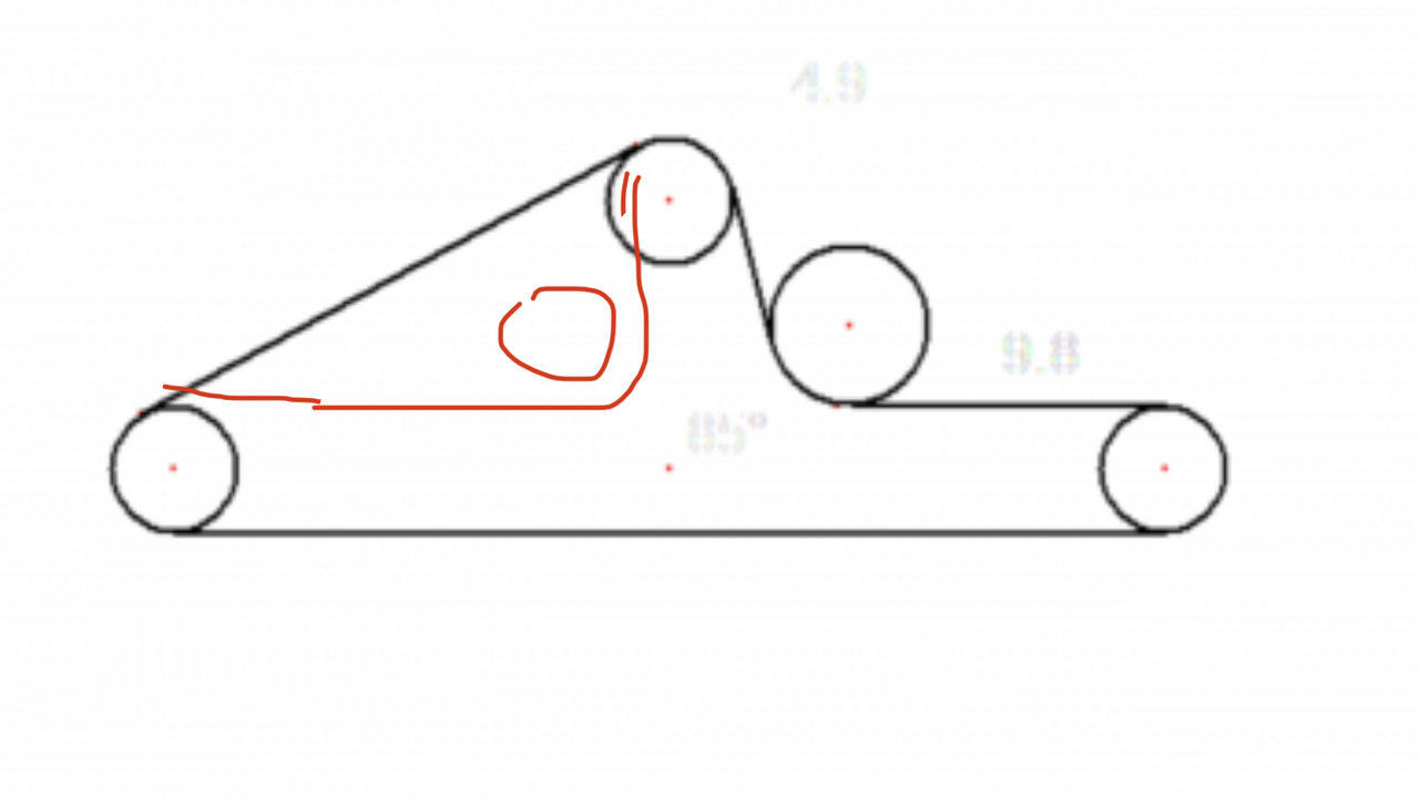 From there I draw in the (I'm guessing) 5" idler pulley, and draw connecting lines to represent the belt.