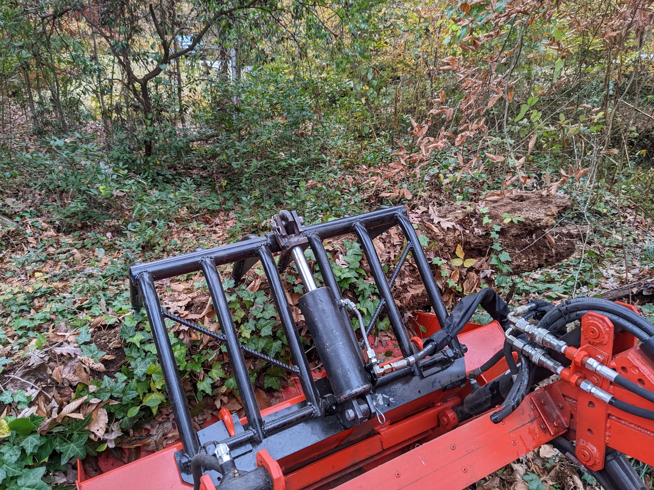 And my hose routing, which has to connect from the third function QD's to the center cylinder on the grapple, and has to accommodate a 24+ inch movement/displacement when the bucket gets curled forward, has been worked out.