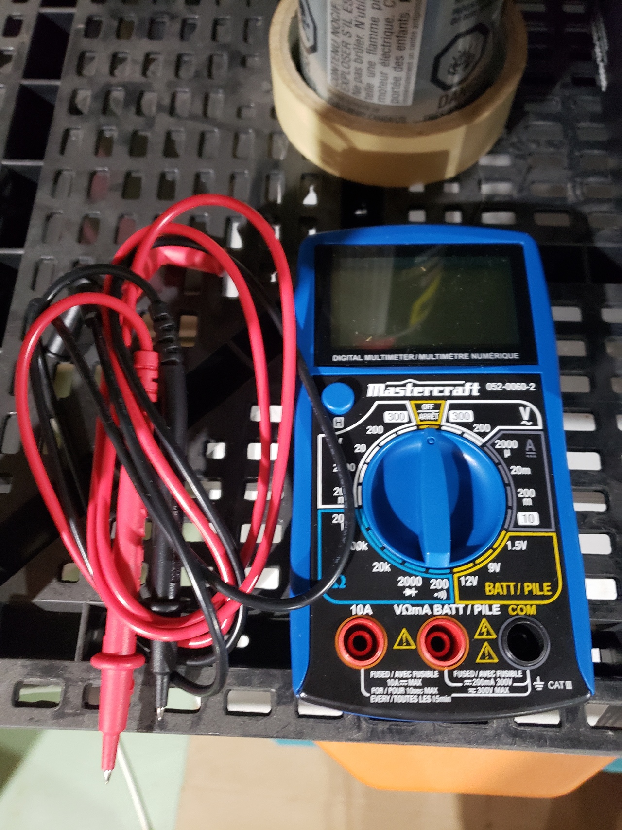 It's usually called a multimeter because you can measure voltage (volts), current (amperes/amps), and resistance (ohms). Set the middle dial to point to upper left 20 volts, that is selecting the range of measurement. The red and black wires like in the picture below. Then you touch the black pointy lead to the negative of the battery, or a good clean metal point on the chassis, and the red pointy lead to where you think should be 12 volts. May as well first test it on the battery "plus" and "minus".FreddyFont wrote: ↑Wed Nov 23, 2022 7:06 pm