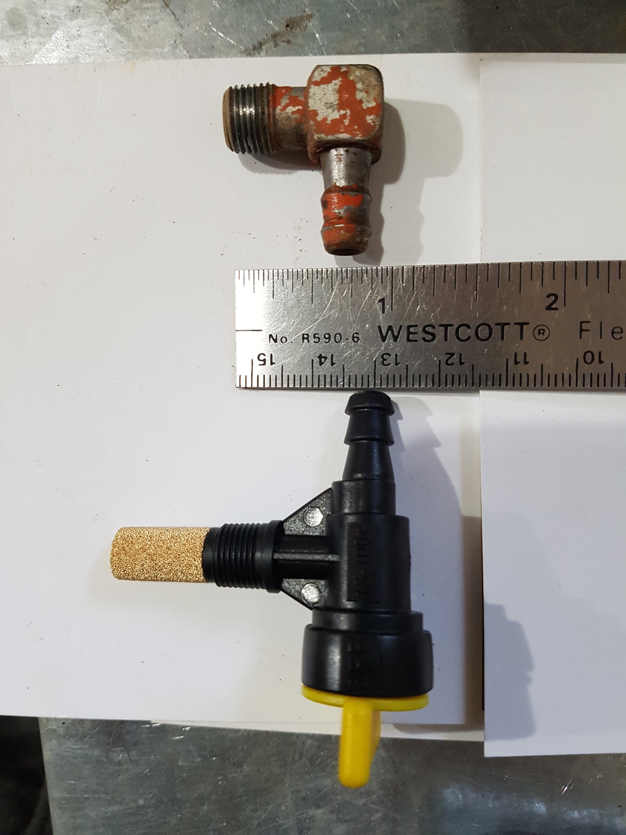 After some searching I found these low profile shot off with a filter . 90 fittings with screen seem to be NLA.