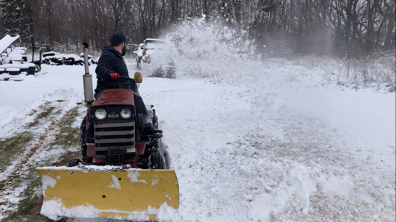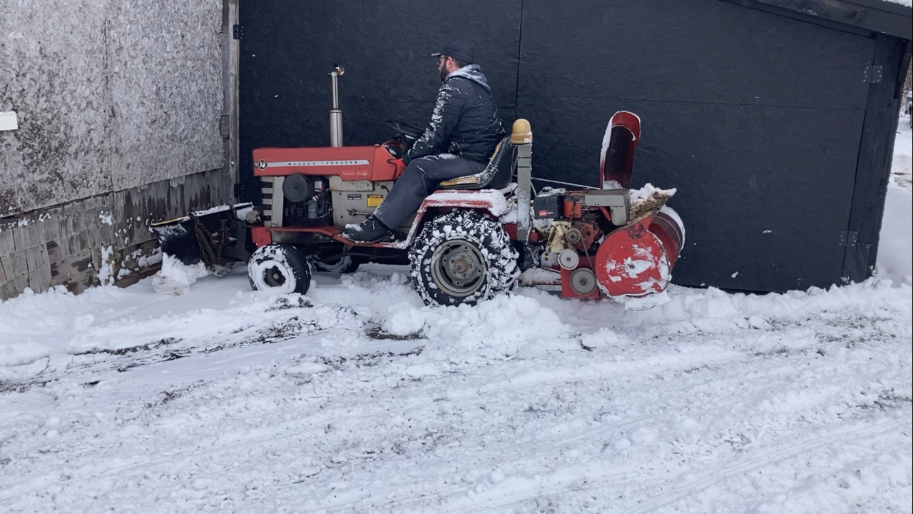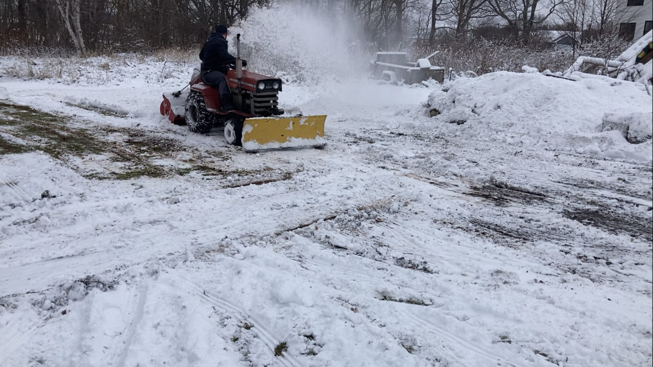 Well some wet snow last nite and son had the rear mounted thrower out heaving the wet snow. Worked good. The 8 hp tecumseh motor sounds great when the load comes on it. Throwing the wet snow not to bad. Video on Real Garden Tractors web site or face book site, what ever it’s called,