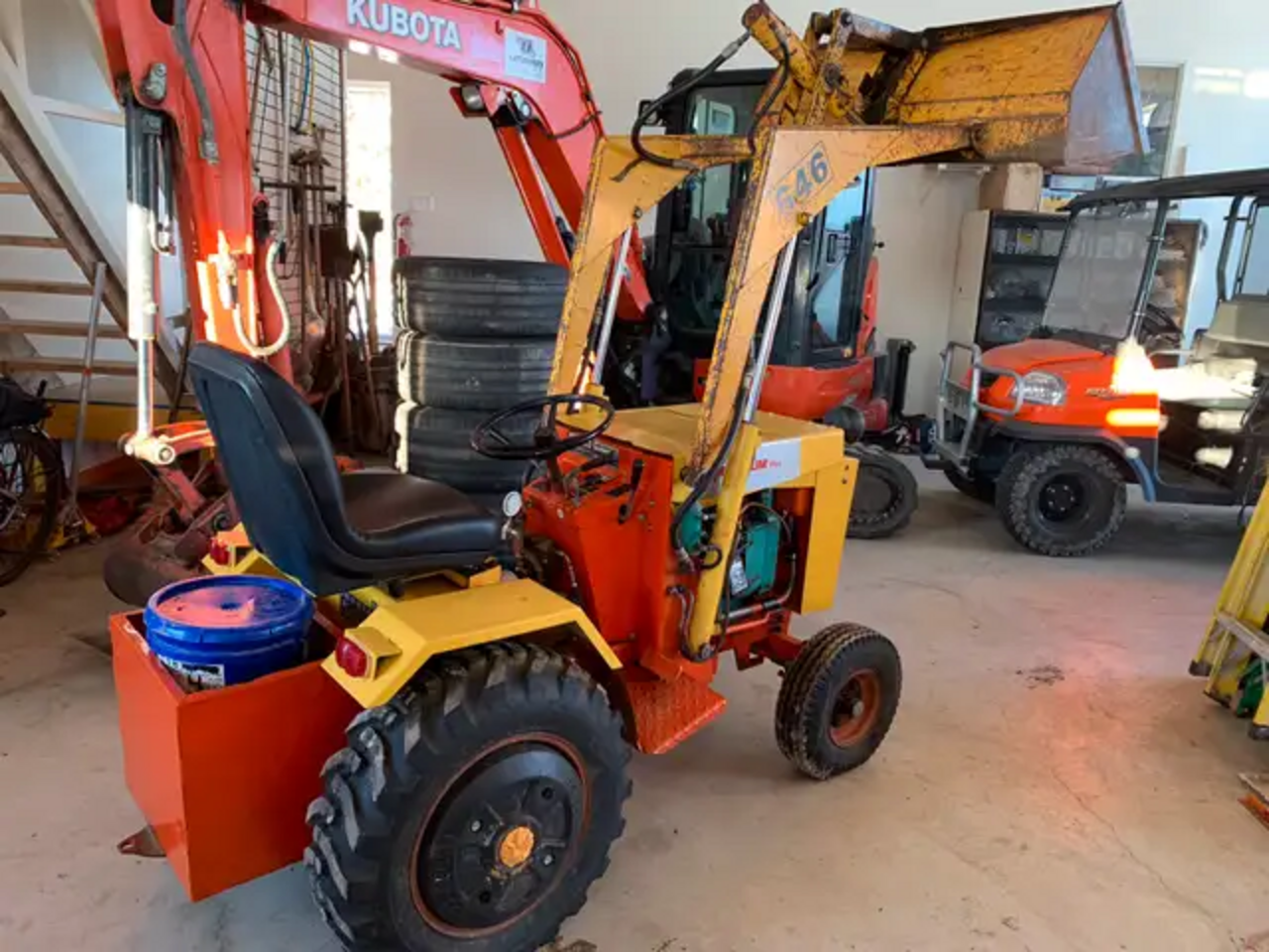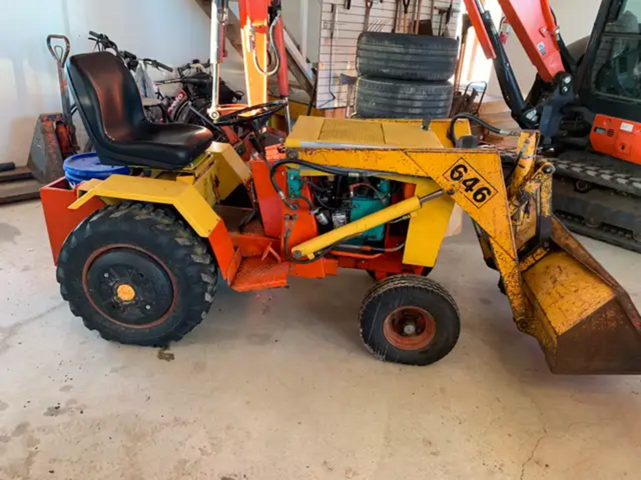 This Case 646 is the Big-Little tractor built by Case. It is the most muscular yard/ garden tractor built. The 16.5hp two cylinder Onan engine is gas and has lots of power. These tractors all came with a solid loader and 45” bucket. It starts right up. I bought a neighbors home who used this tractor for years in Springbank. I can load it for you with my skid steer. All fluids were just changed ready to go. It comes with rear wheel weights, a removable weight box and a manual