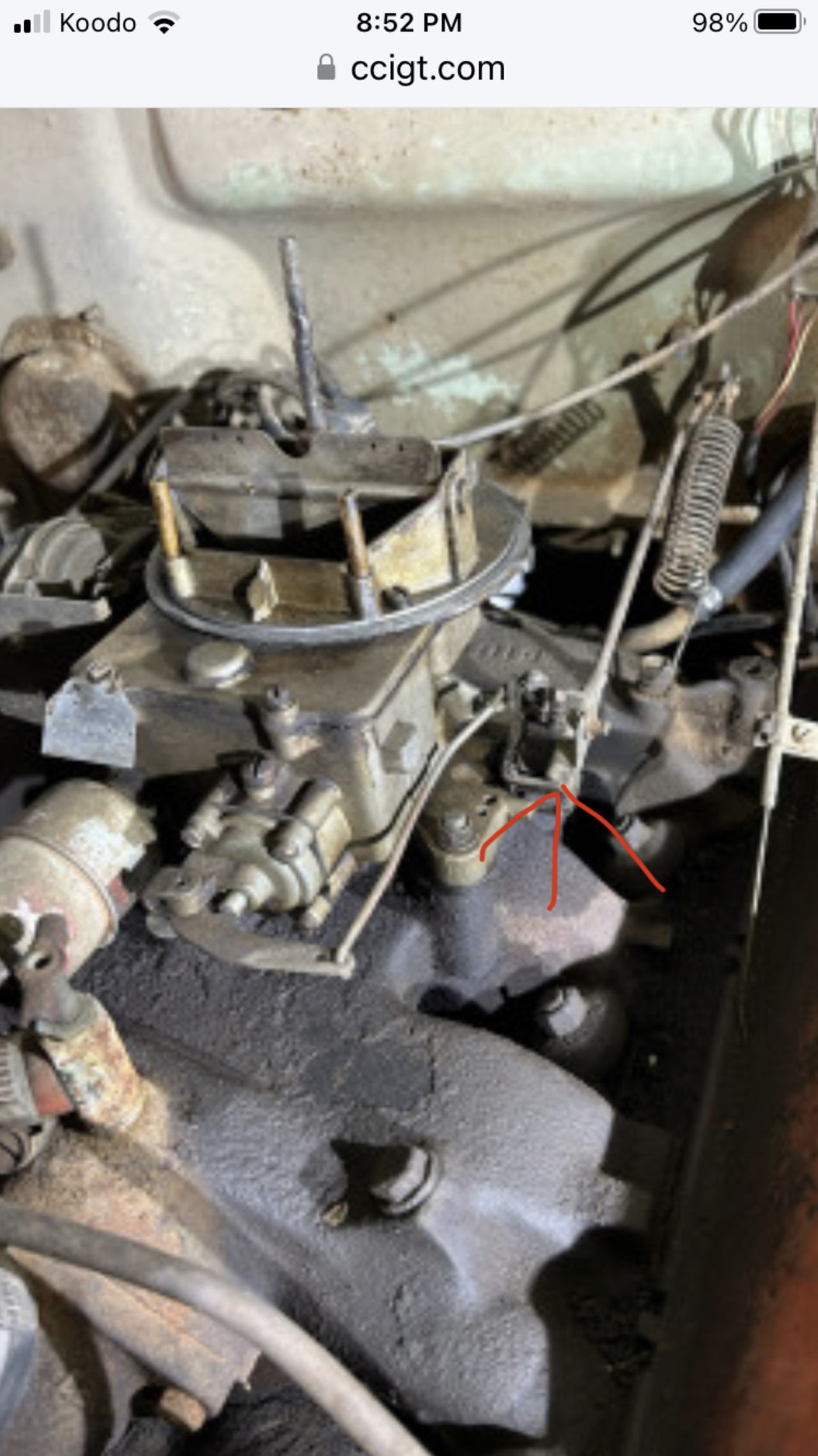 I’m just guessing here Jeff. But I wonder if it goes to the fast idle cam an the choke linkage. ? Just guessing.