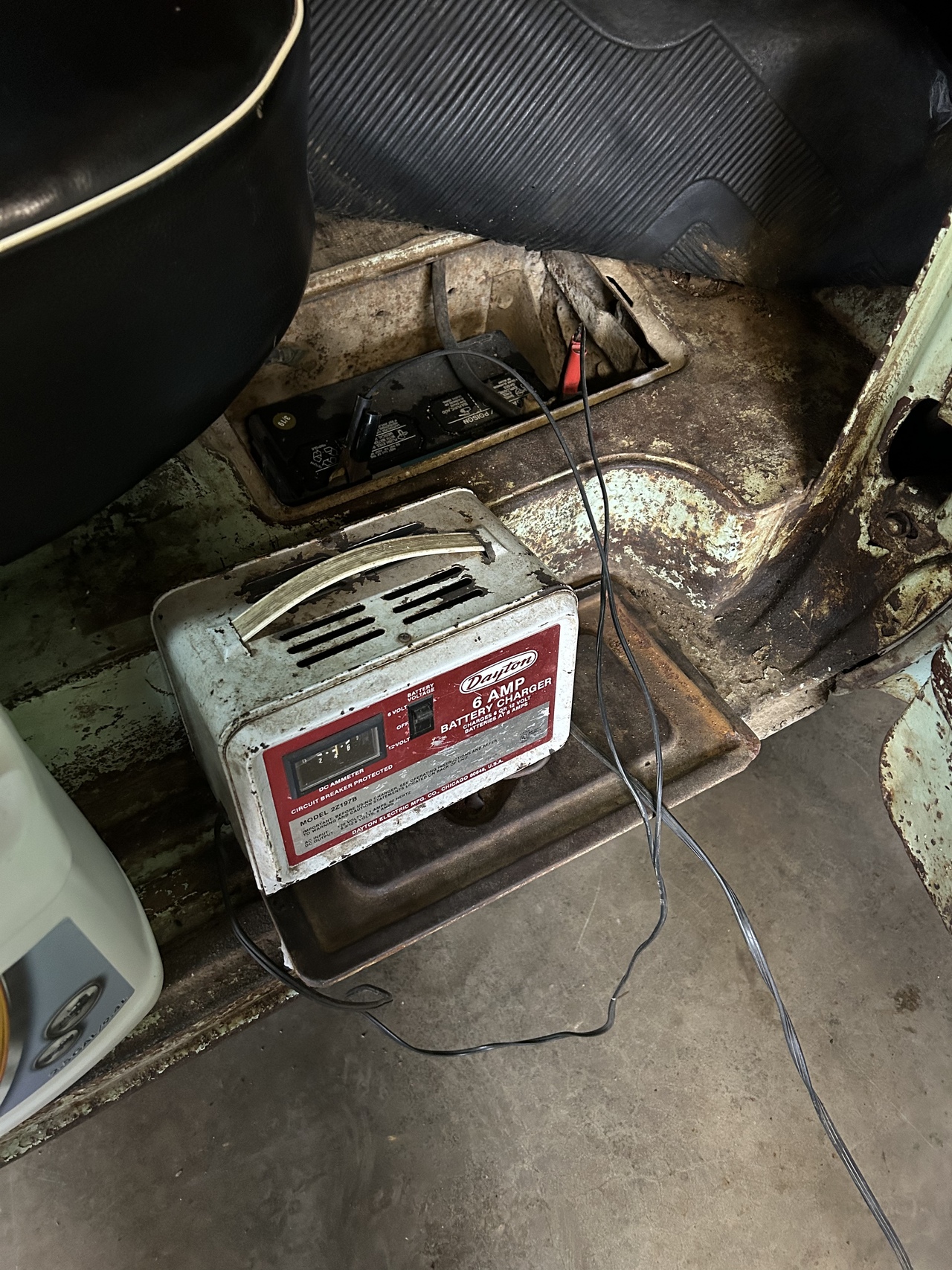 With the battery charged up I hopped into the driver’s seat, set the choke, pumped the gas 4 times, and hit the key. The truck fired up immediately! :69: