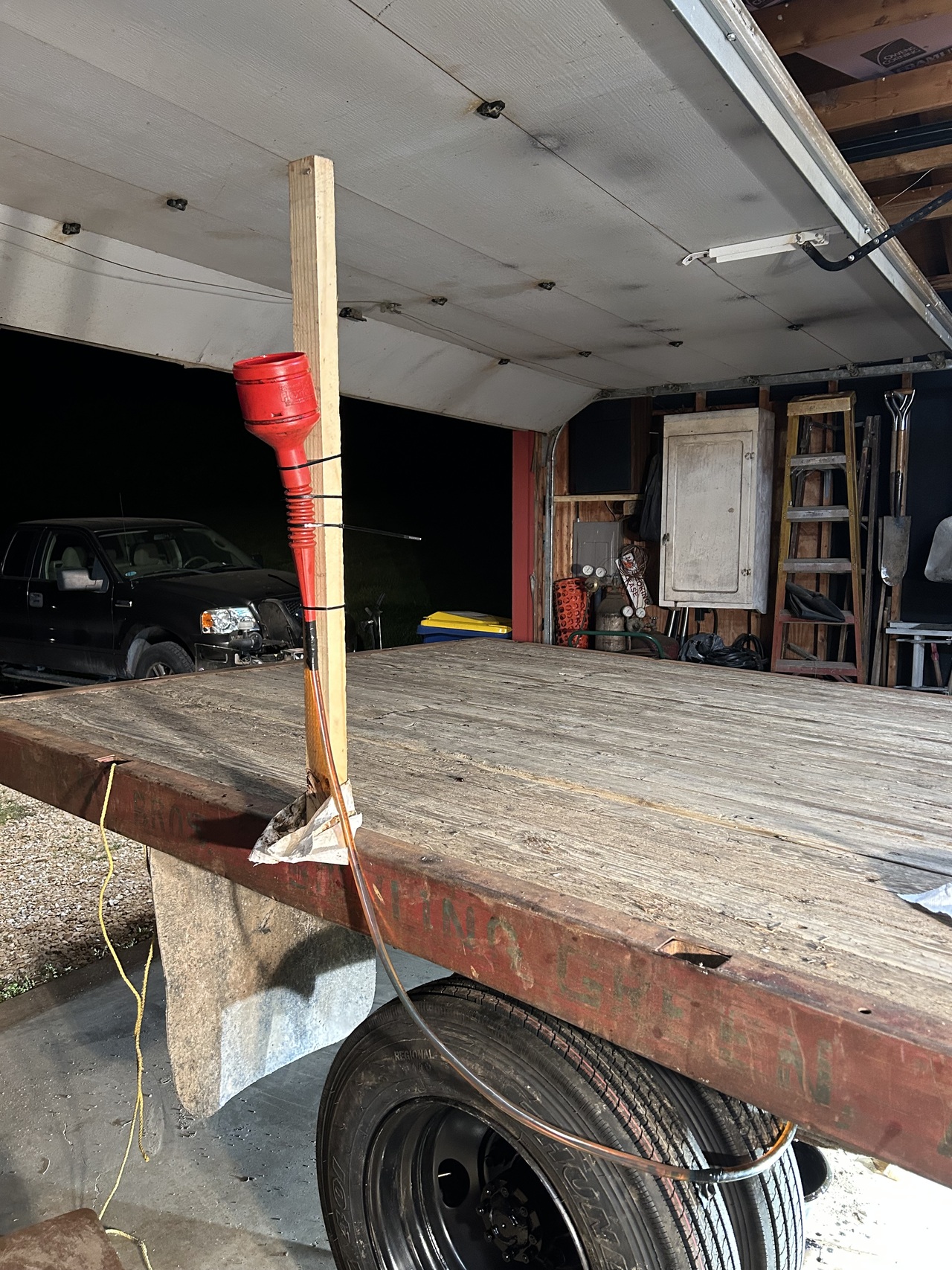 I decided to hang the tank off the side of the truck and put 10 gallons of water in it.