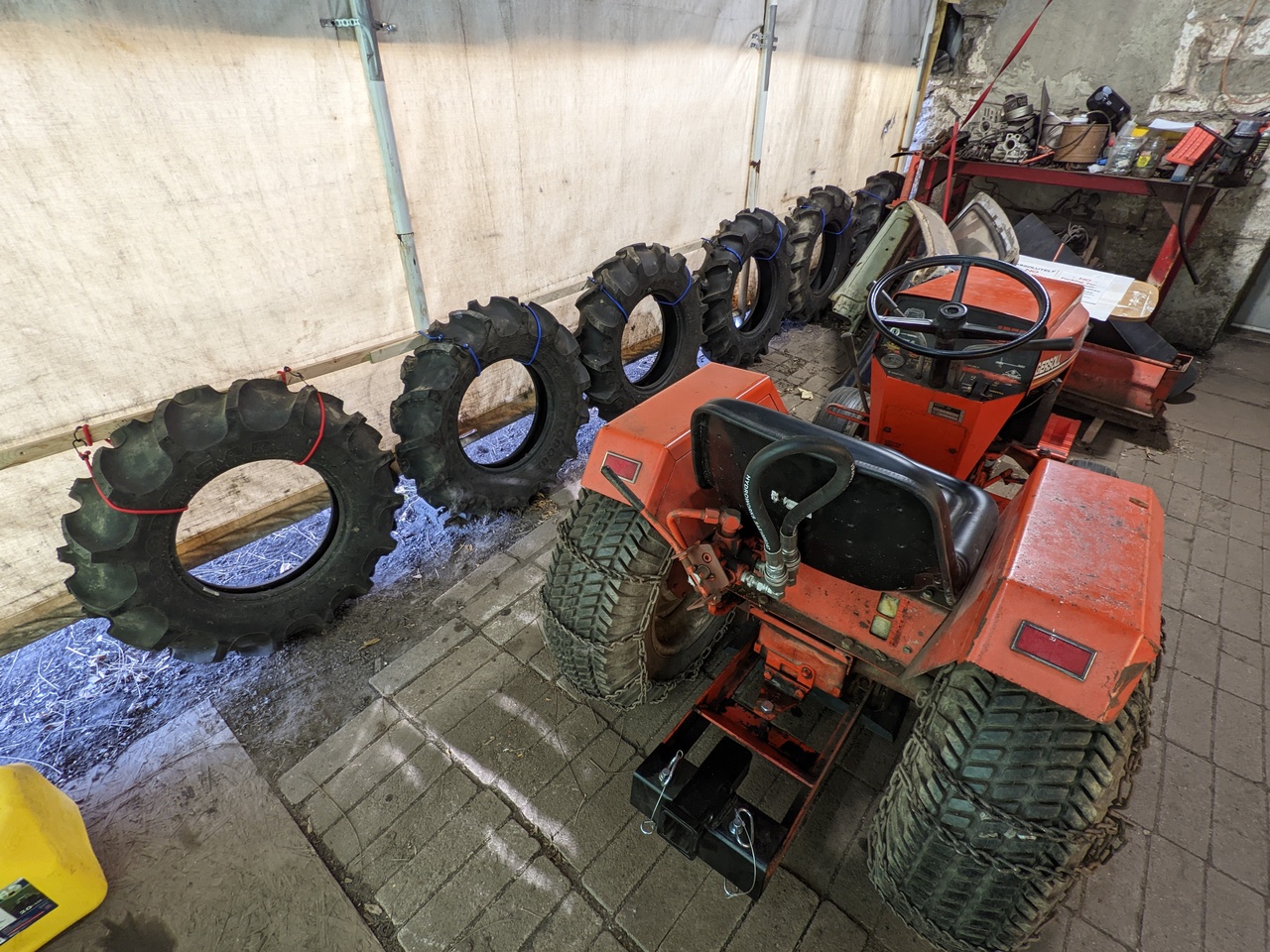2-for Max (the 446) and 4 for BluZuki... just picked up a set of 16" rims for the Samurai and I've had the spare set of Case rims since last fall, all 6 wheels have had the old rubber stripped off and just need cleaning and painting before I wrestle with trying to get the Ag tires mounted - I'm waiting till we have some warmer weather again as the tractor tires have sucked in a bit and the sidewalls are pretty stiff - hopefully a few warm days in the tent garage and some chunks of 2x4 to open them up and I should be ready for a few hours on the Princess Auto tire machine...