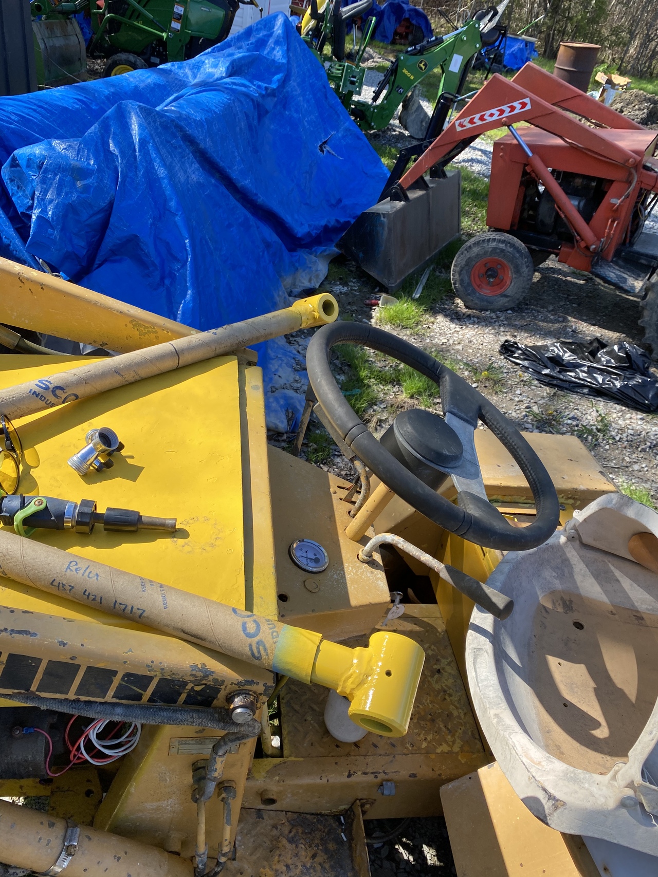 Had a productive day. The morning was spent with the boys, we went in town, then some grocery shopping and finally could start working on the backhoe around 2:30. After the welding I cleaned up that area a little with the grinder and spray painted the ends as you saw.