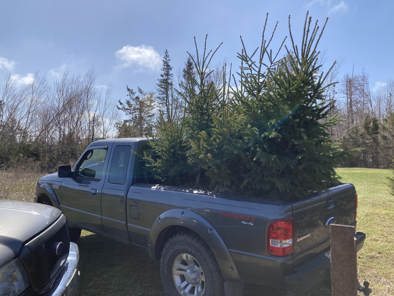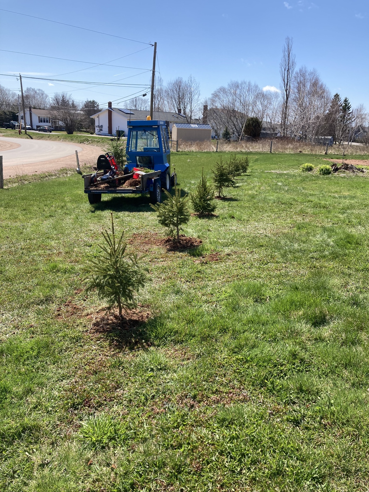 Son and I were out to get more spruce trees for his privacy fence. Dug up 14 today. And planted 14 today. I’m done in again. Grandson helped.