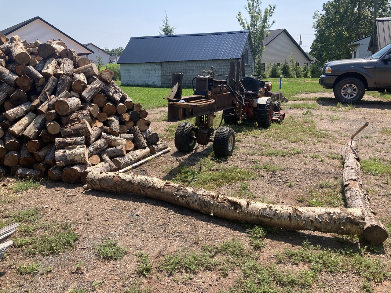 Splitting wood with the Case 224 today and the MF7 comes home from sons place to cut the grass. This will save me, hopefully, from hauling the Case from my place to sons place each time I want to cut the grass at home.
