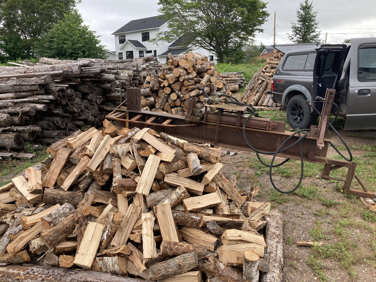 Still another pile length of 8’ logs to do yet. Put that would take I figure 8 weeks to do. And I’m running out of time before possible bad weather hits in two months time. And I don’t mean snow, I mean rain and hurricanes, like last year. So splitting will commence today.