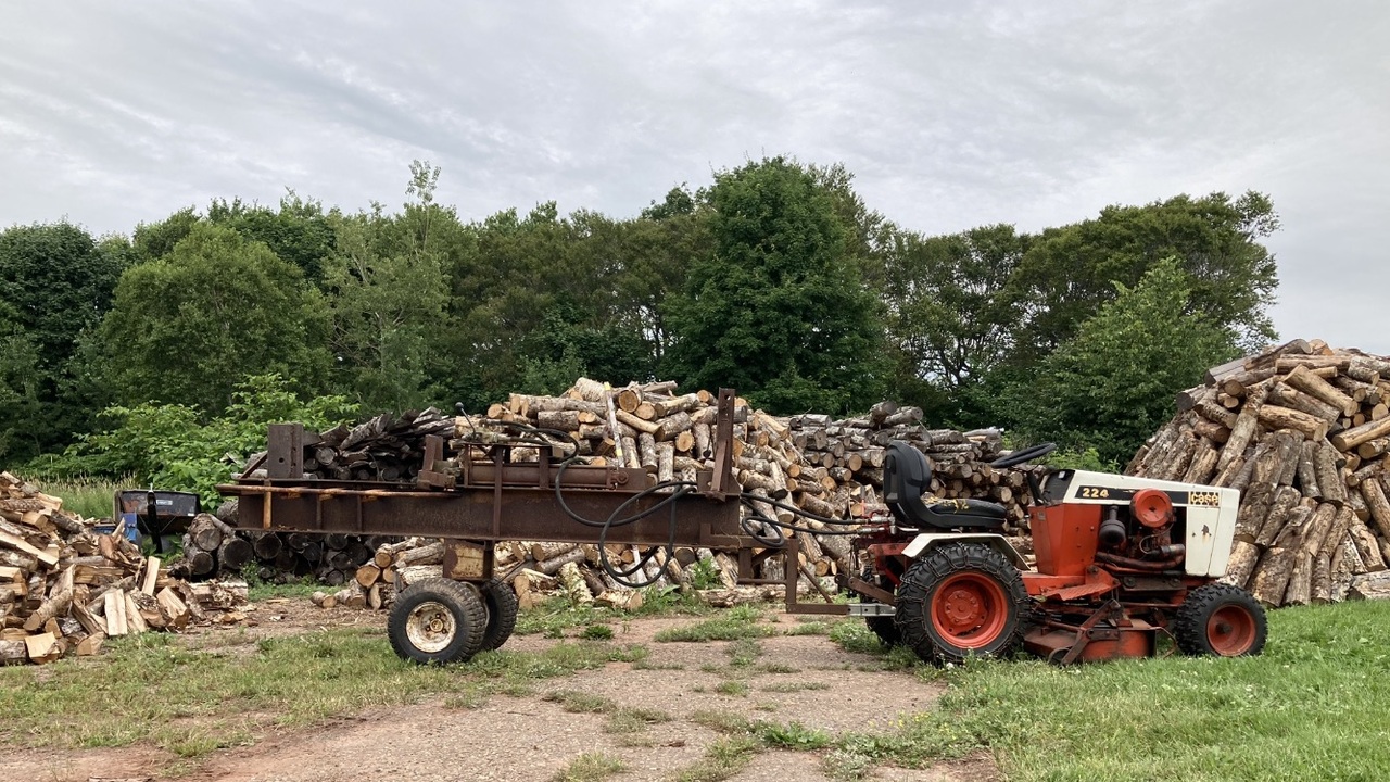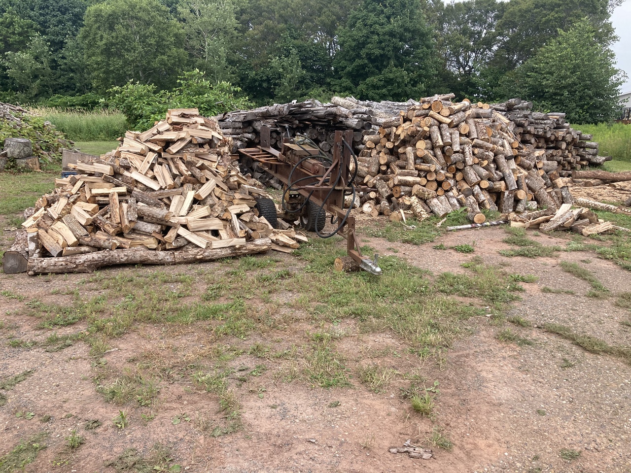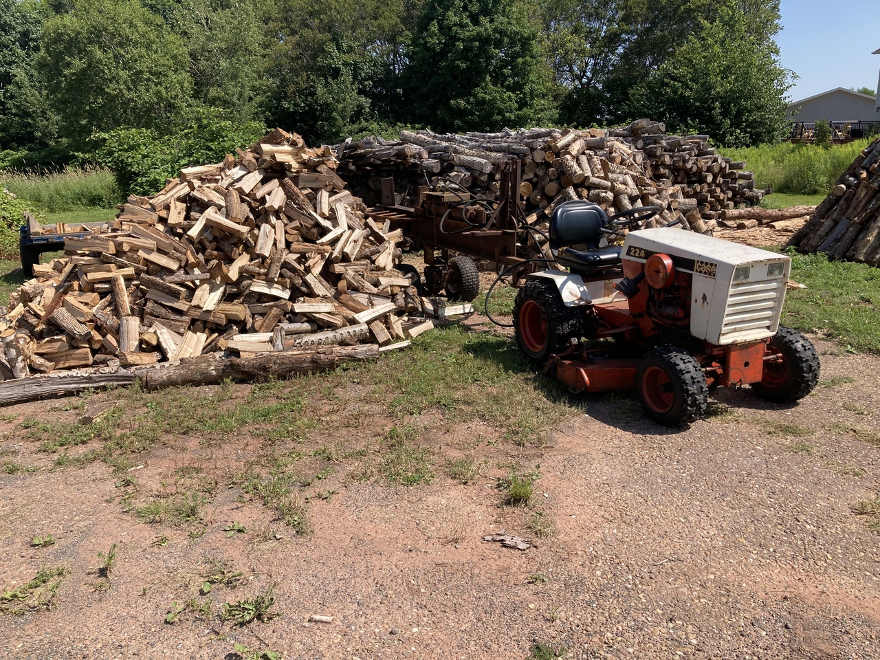 More wood split today. The Case 224 hooked to my old splitter worked great. Split for about an hour, then unhooked the hoses and cut grass for 2.5 hours with the Case 224. Was sunny and hot. The grass was very long and wet. In this type of weather the grass would never dry out, no matter how long you waited. Then took out the LGT 100 Ford, aka Grunt and cultivator and up rooted weeds in between the rows in the garden. Then rebooked the splitter hoses to the Case 224 and split for about another hour. Then put the Case under cover. Rain tonite, and all weekend, they are saying, could change thou.