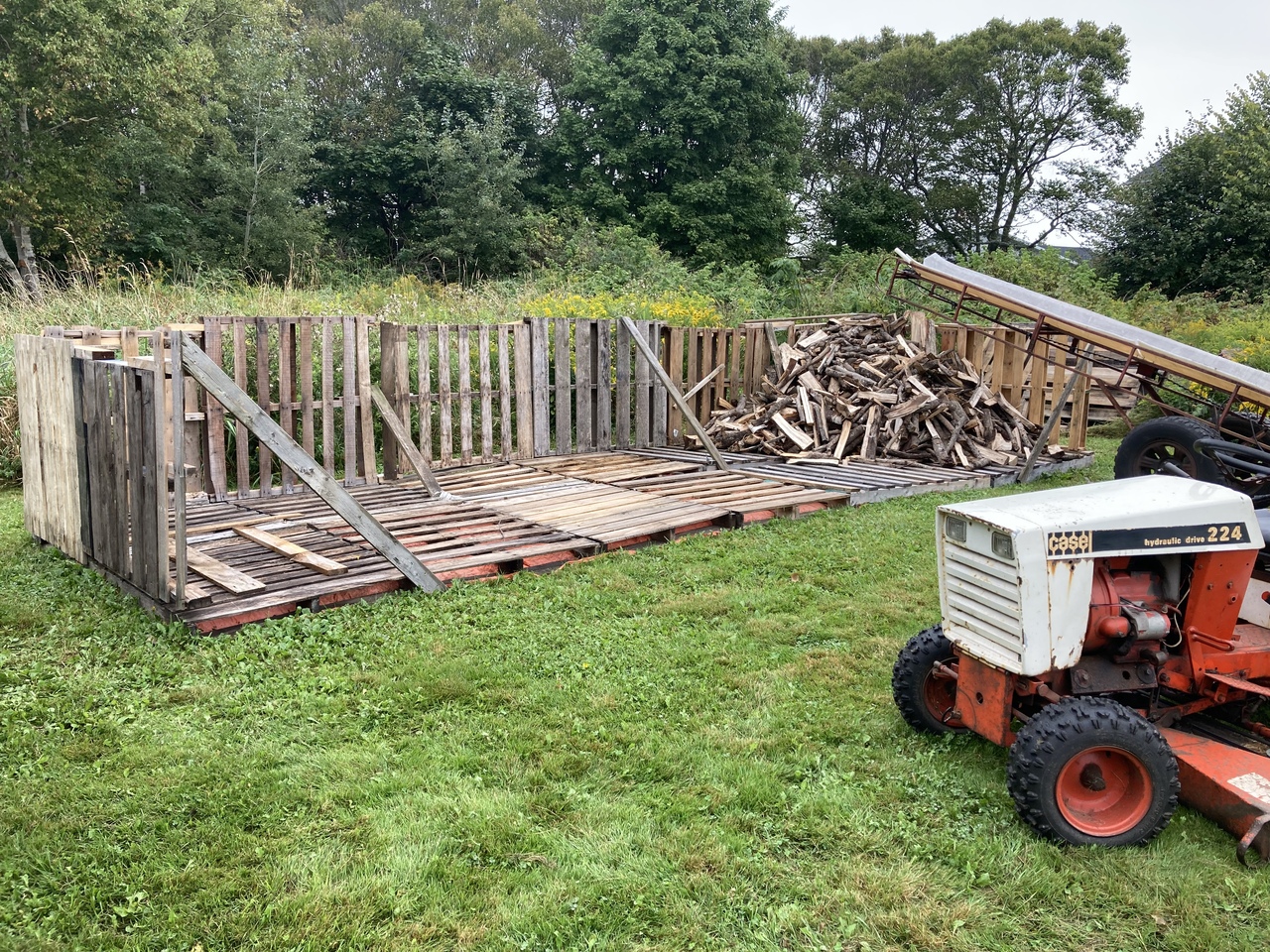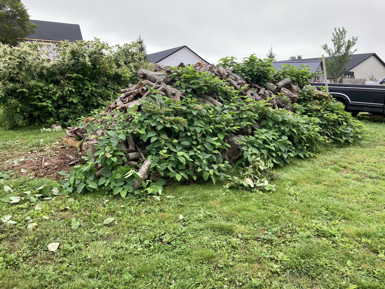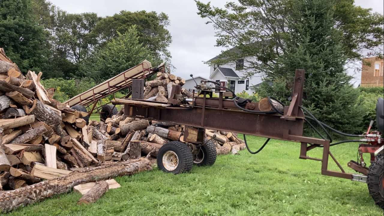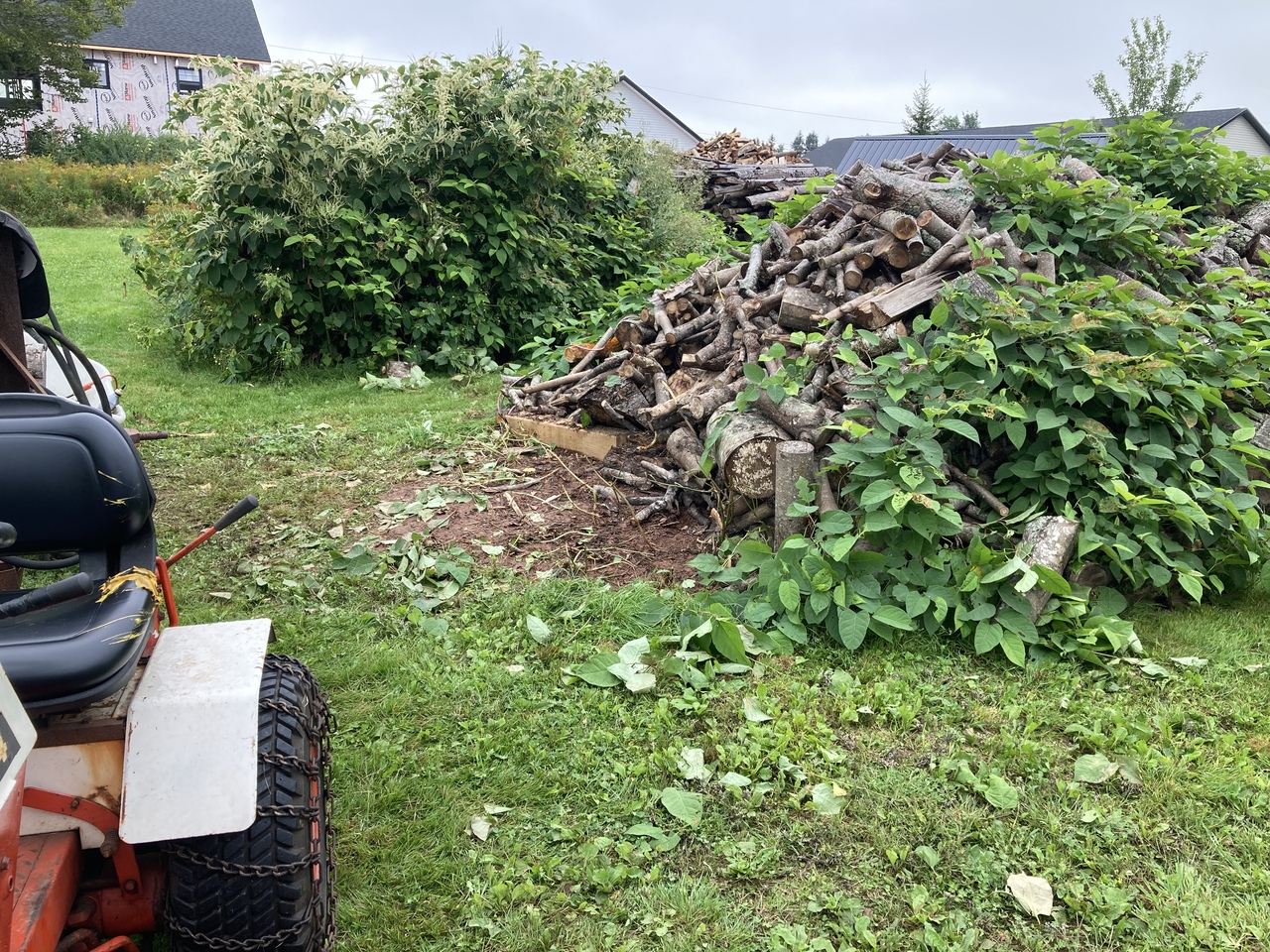Was at the splitting of the Fiona wood, finally today and yesterday. Got a pallet bin built on Monday. And set up the equipment and started at it yesterday. Hoping to have it done by the end of September. Hehe. Nasty plant growing thru it all. Weed whacked it all off a number of times thru the summer. Grows worse that a bad weed.