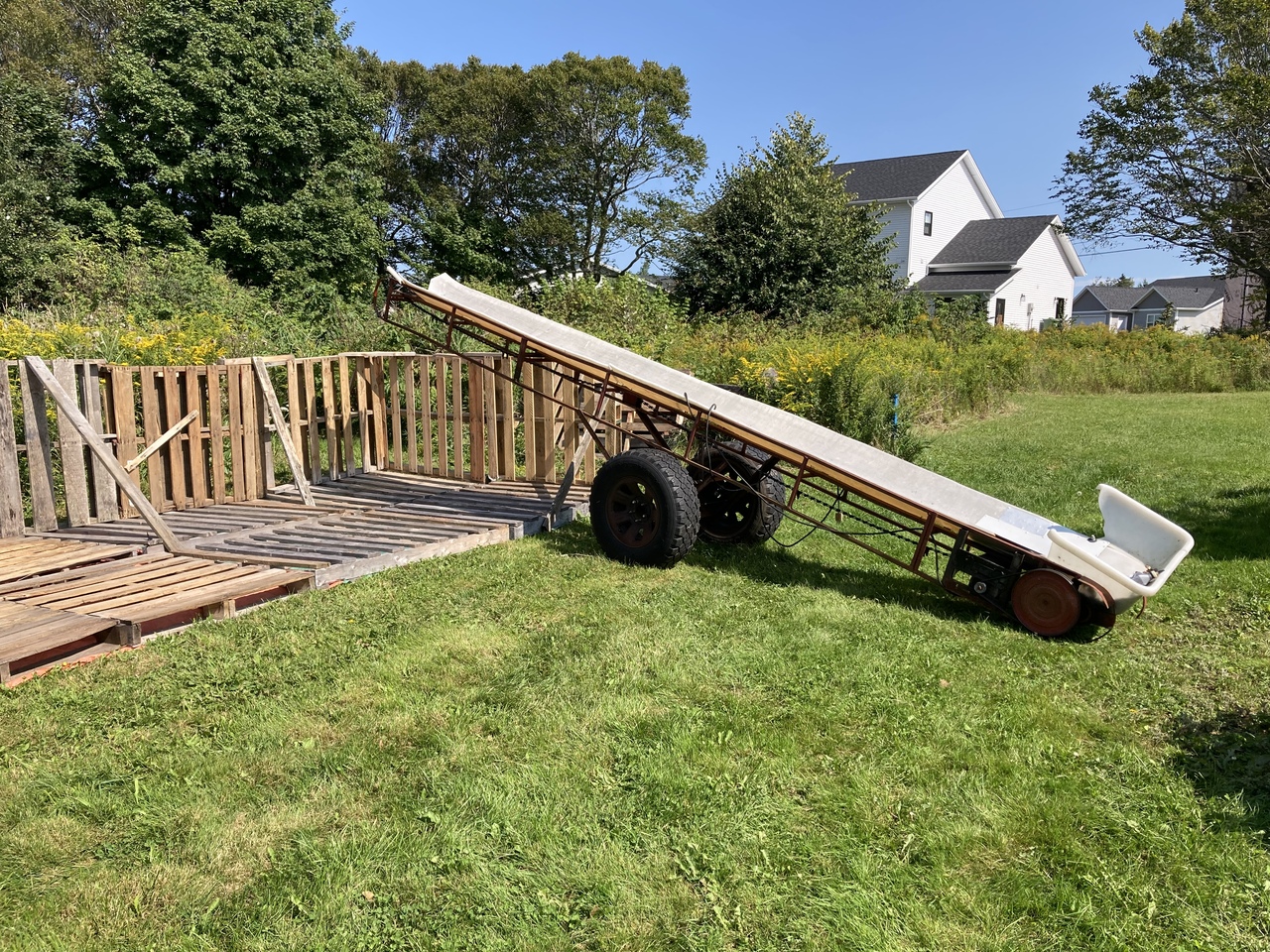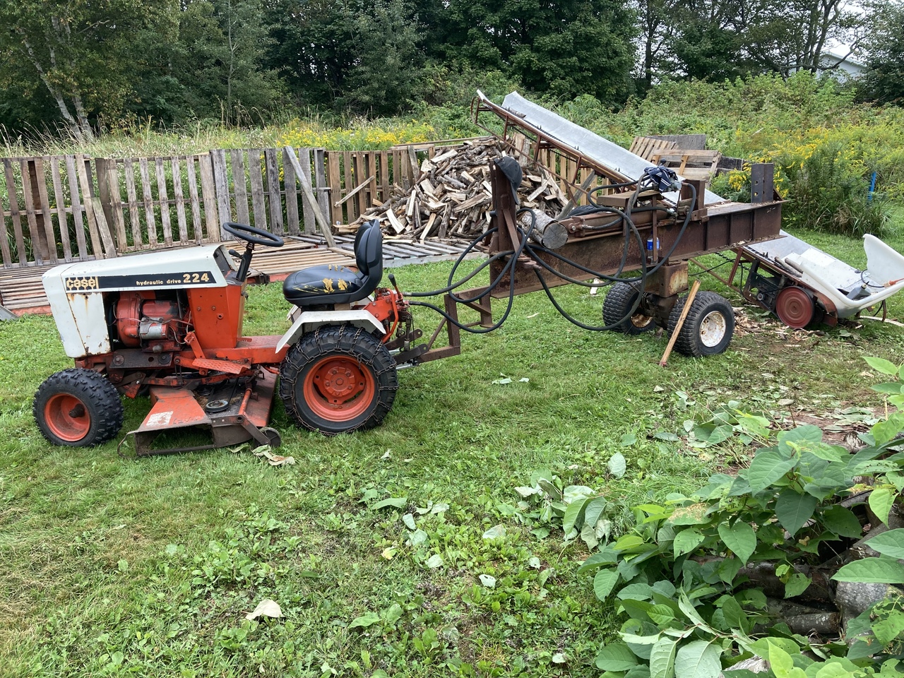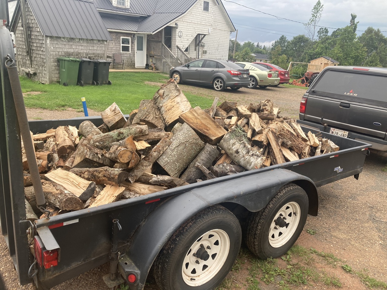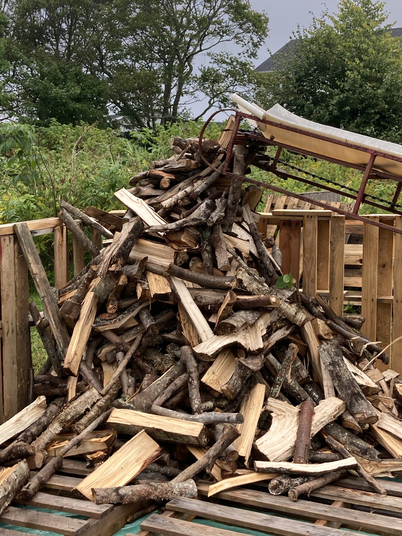 Was at the splitting of the Fiona wood, finally today and yesterday. Got a pallet bin built on Monday. And set up the equipment and started at it yesterday. Hoping to have it done by the end of September. Hehe. Nasty plant growing thru it all. Weed whacked it all off a number of times thru the summer. Grows worse that a bad weed.