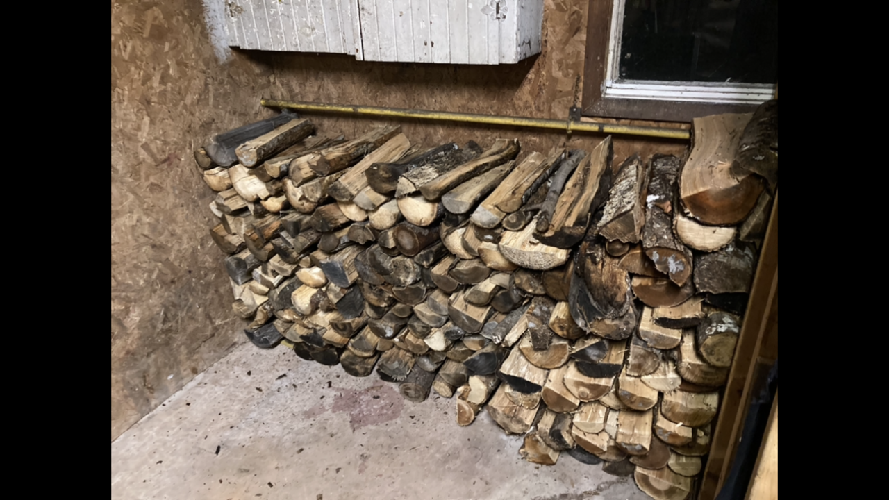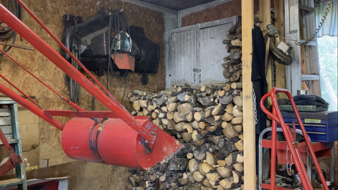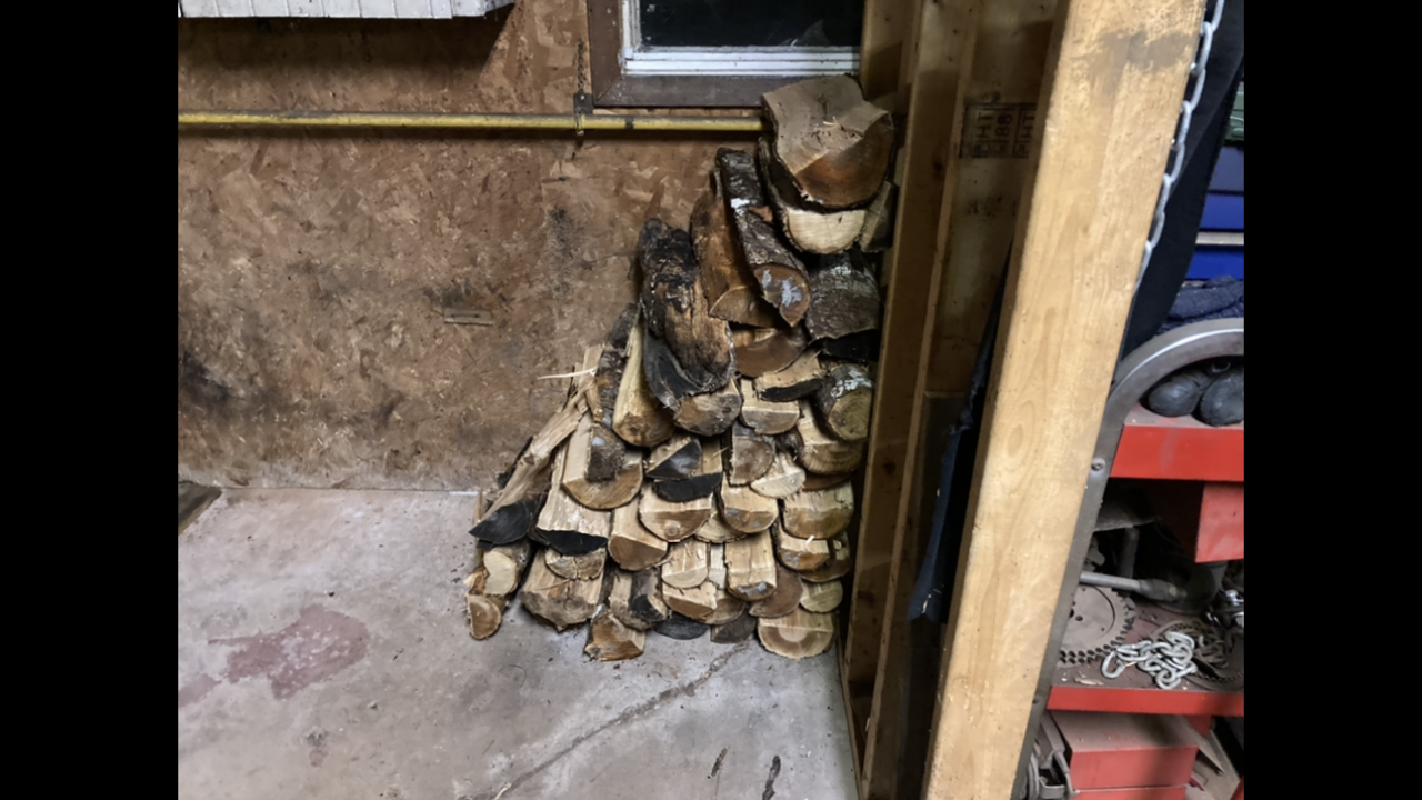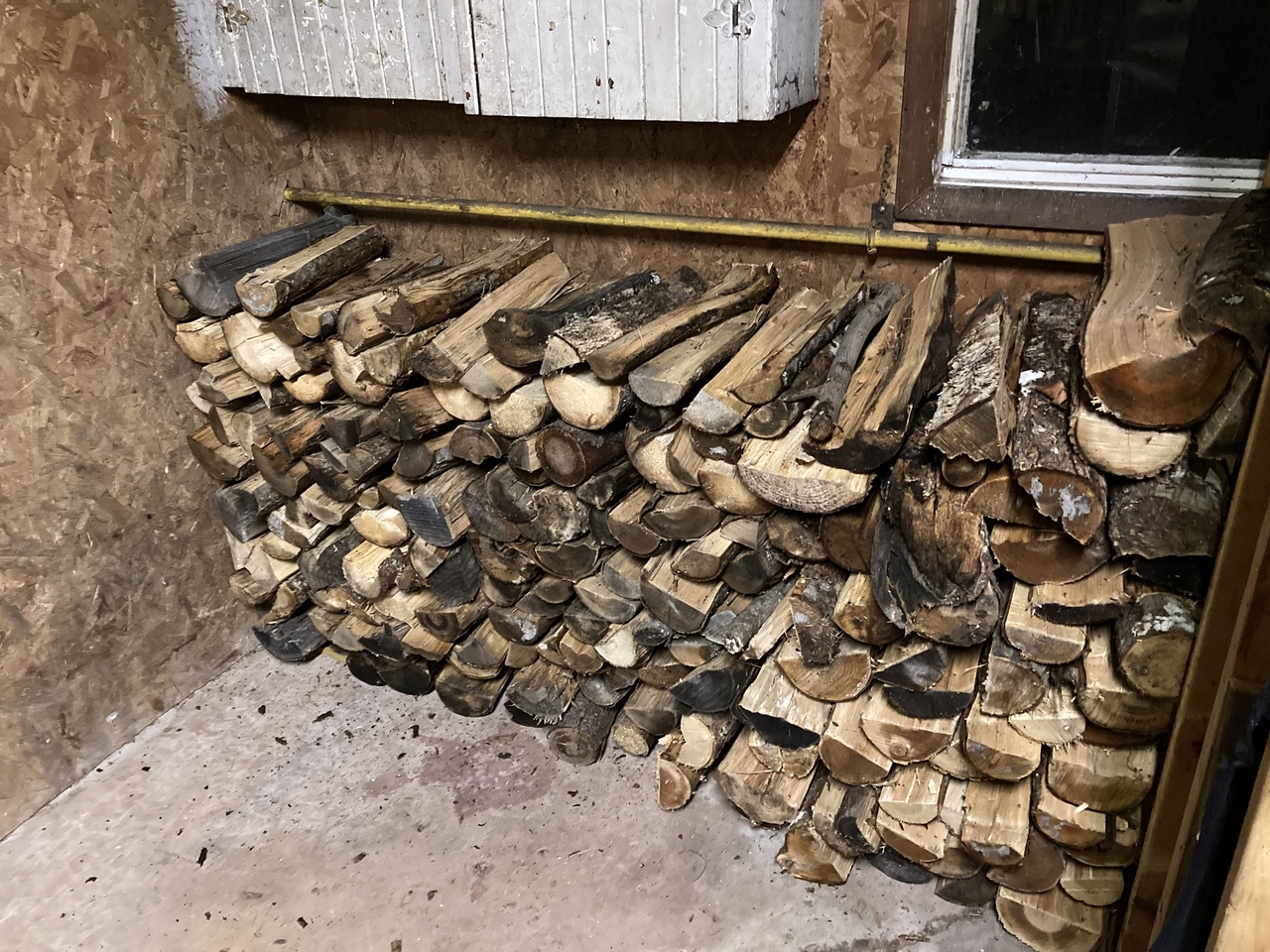 Still at the wood. And have some stacked in the garage. Loader comes in handy for that.