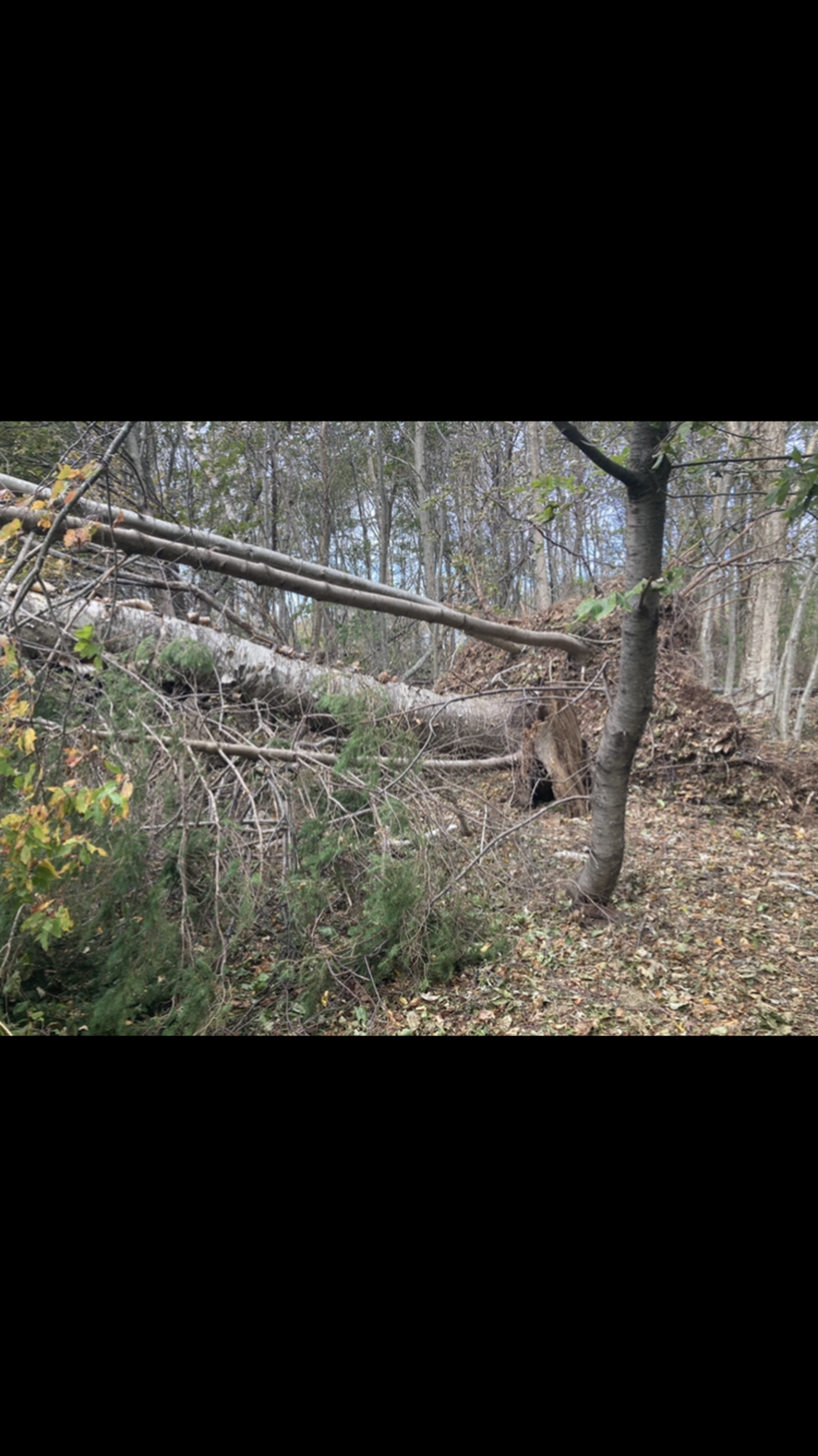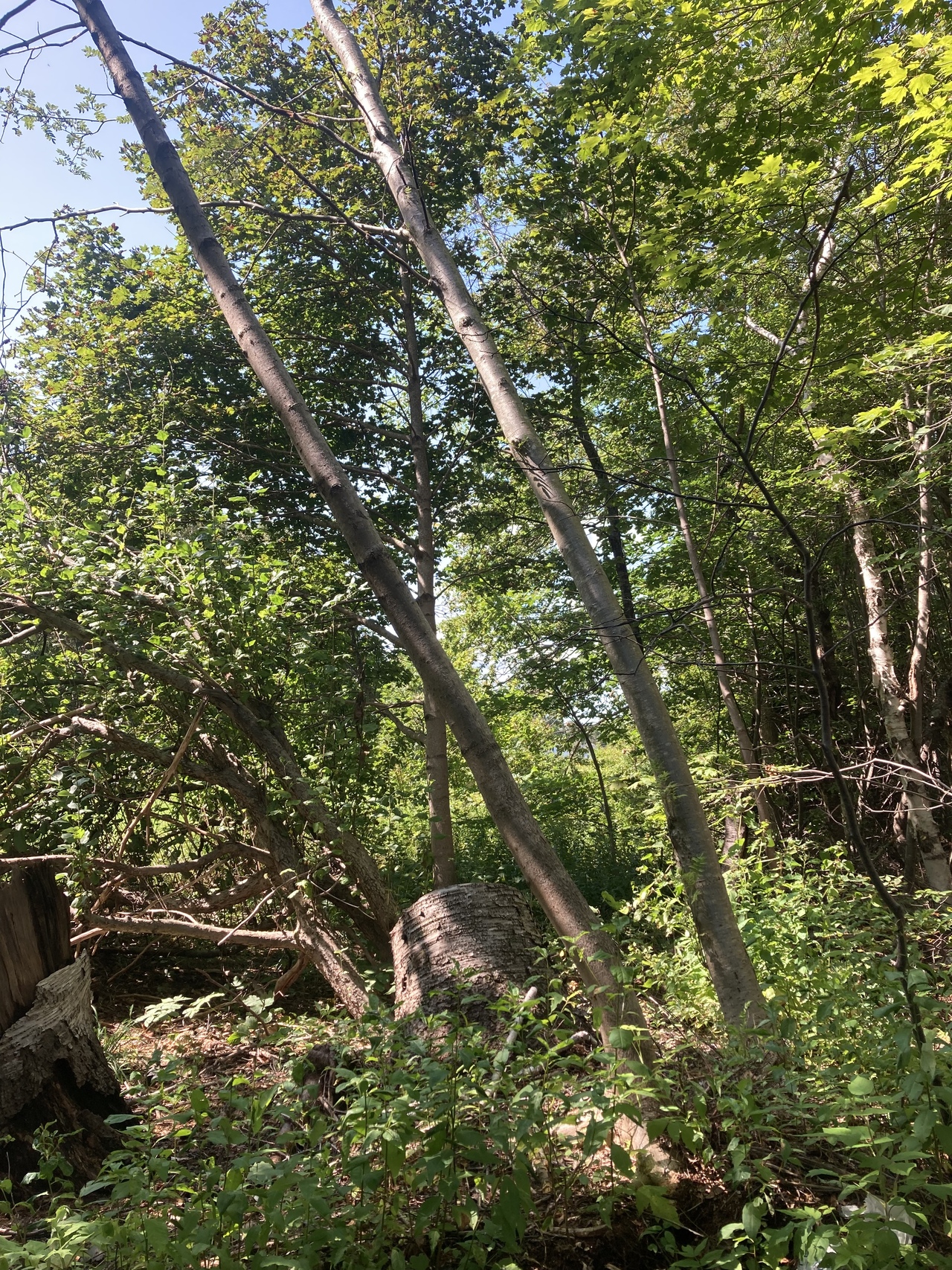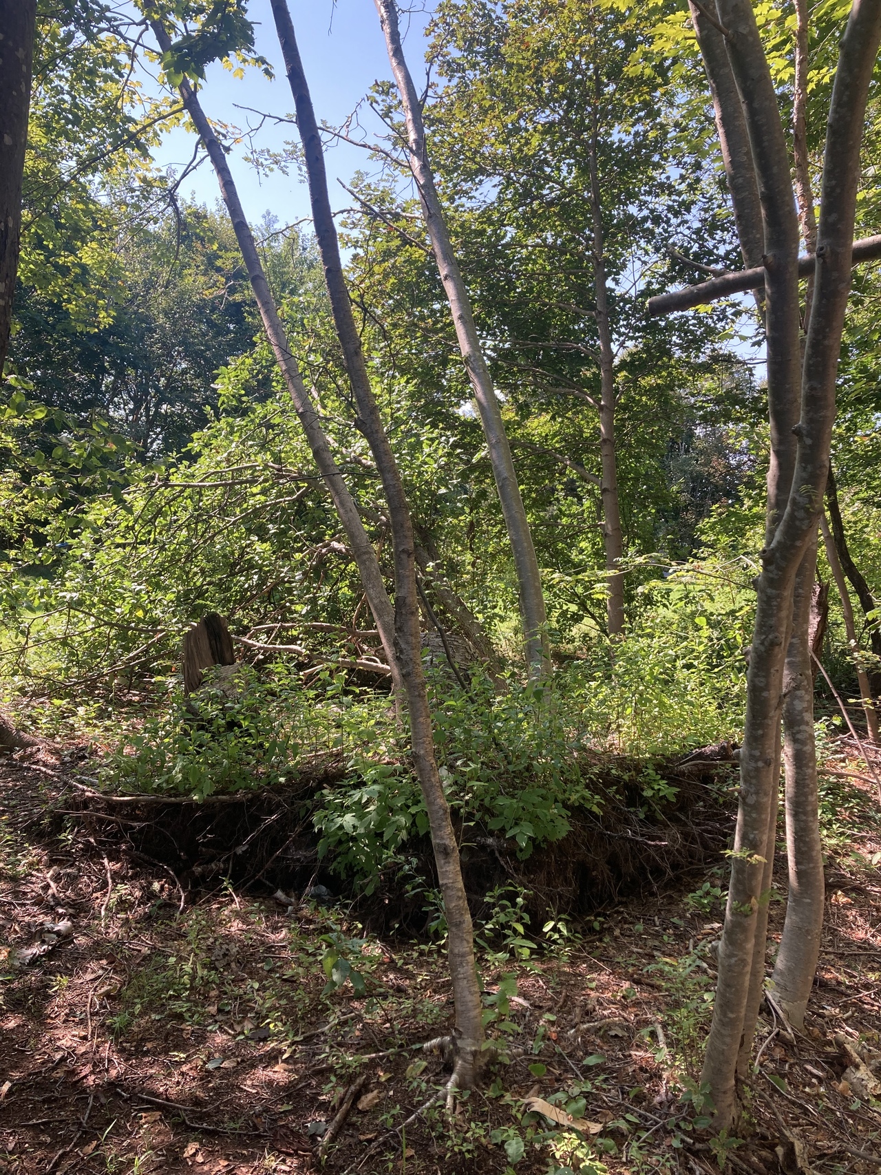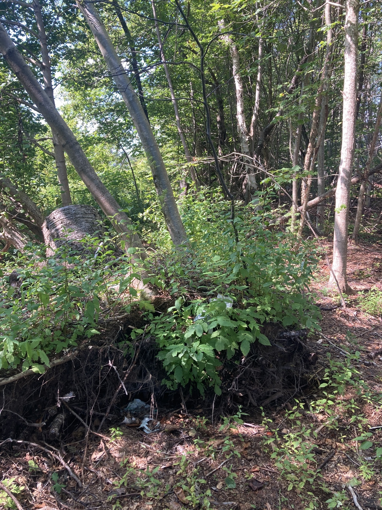 This birch tree and the two little maples were almost horizontal to the ground and the roots were up at 90 degrees or so, after hurricane Fiona last September.