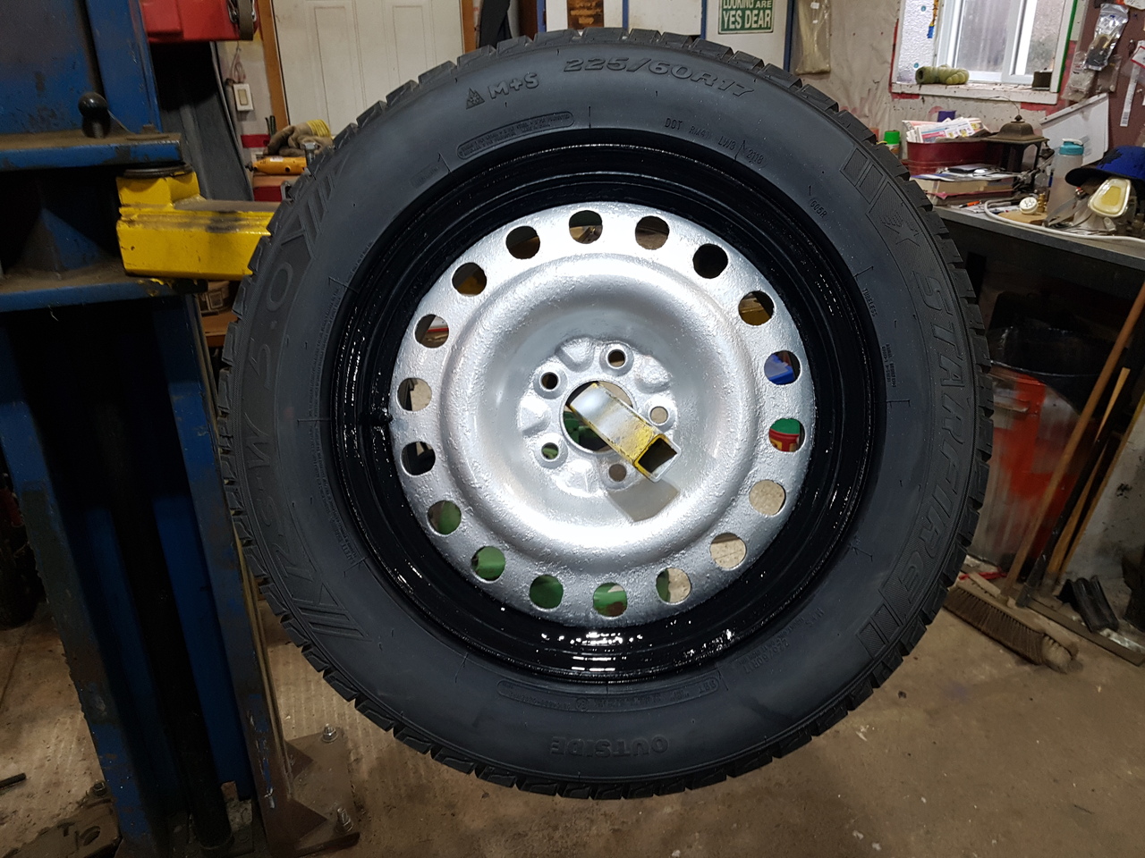 winter wheels . You know those black steel wheels that are covered in rust after the first year. I did not think of taking a before pic. But here is a pic . after the needle descaler and Krud Killer Rust converter