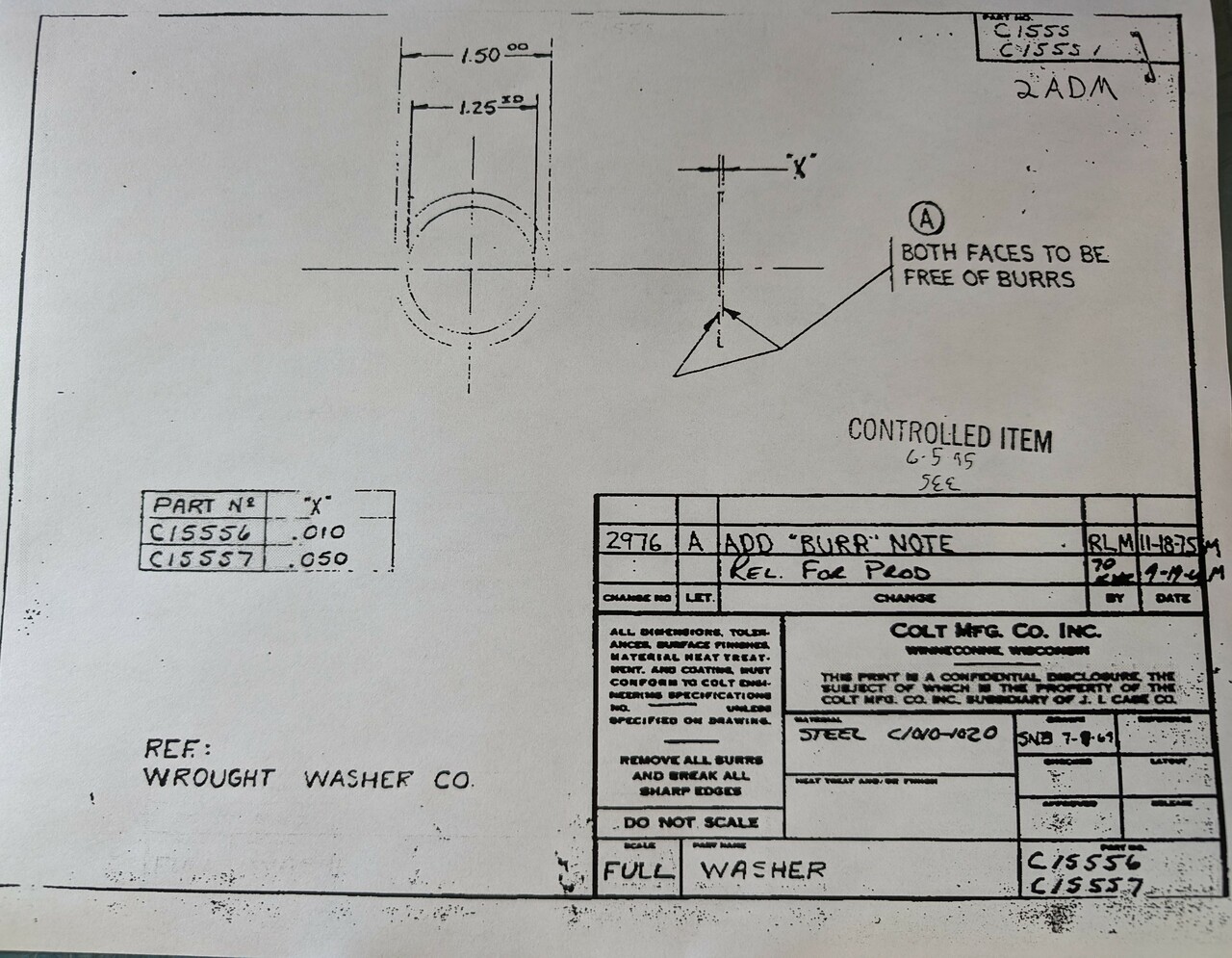 Here is a copy of the original engineering drawing for the C15557 (and also C15556) shim washers, notice that they do not carry the dimensions out to the 3rd decimal as the size is not that critical.