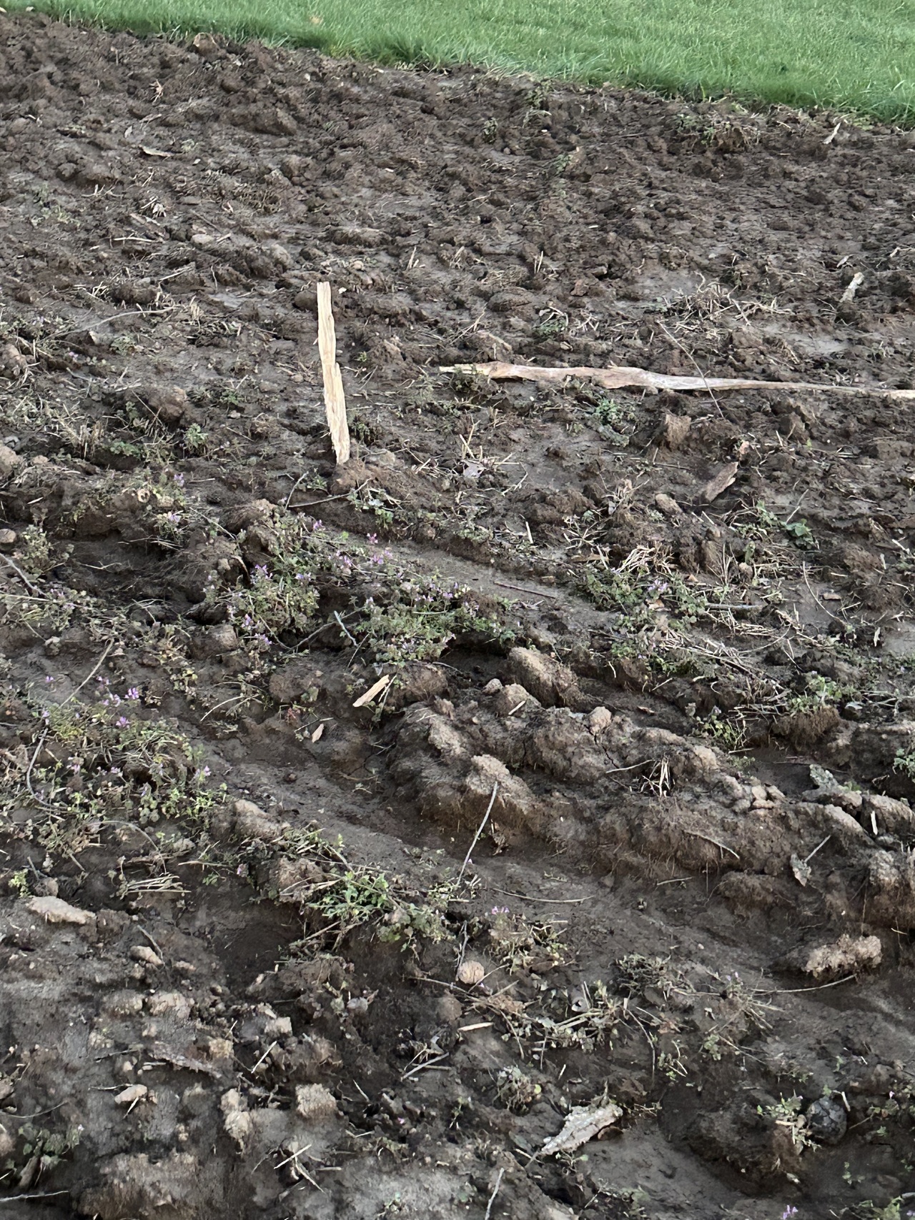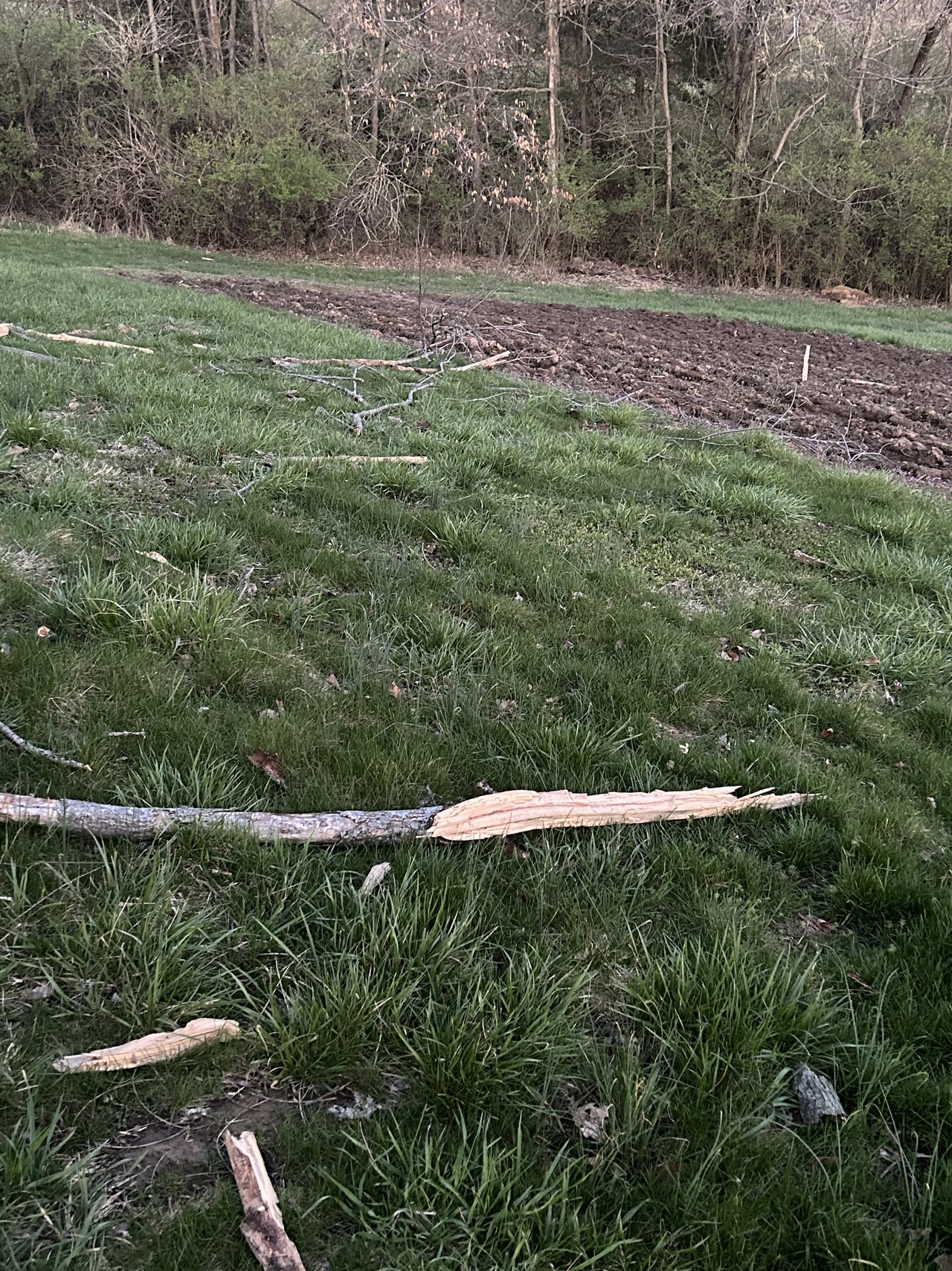 Not sure if lighting hit the tree or if it was just wind. The heavy rain sure flattened out my freshly plowed garden!