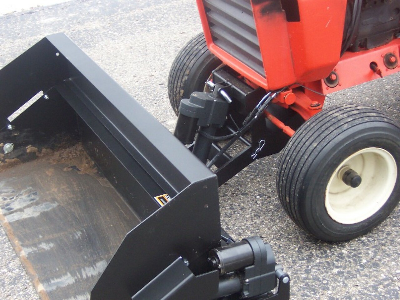The missing tooth is replaceable. The wiring harness can also be bought at a reasonable cost. Lift and dump are both done by linear actuators. Earlier versions used the tractors mid lift (AFAIK).