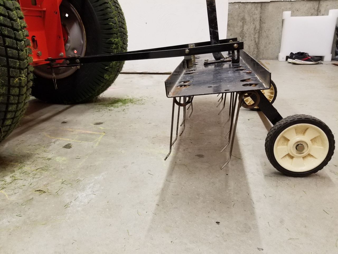My dethatcher doesn't work all that great when I'm not towing it behind my aerator at the same time because its designed for a box store ride on mower with a hitch about 3" lower.
