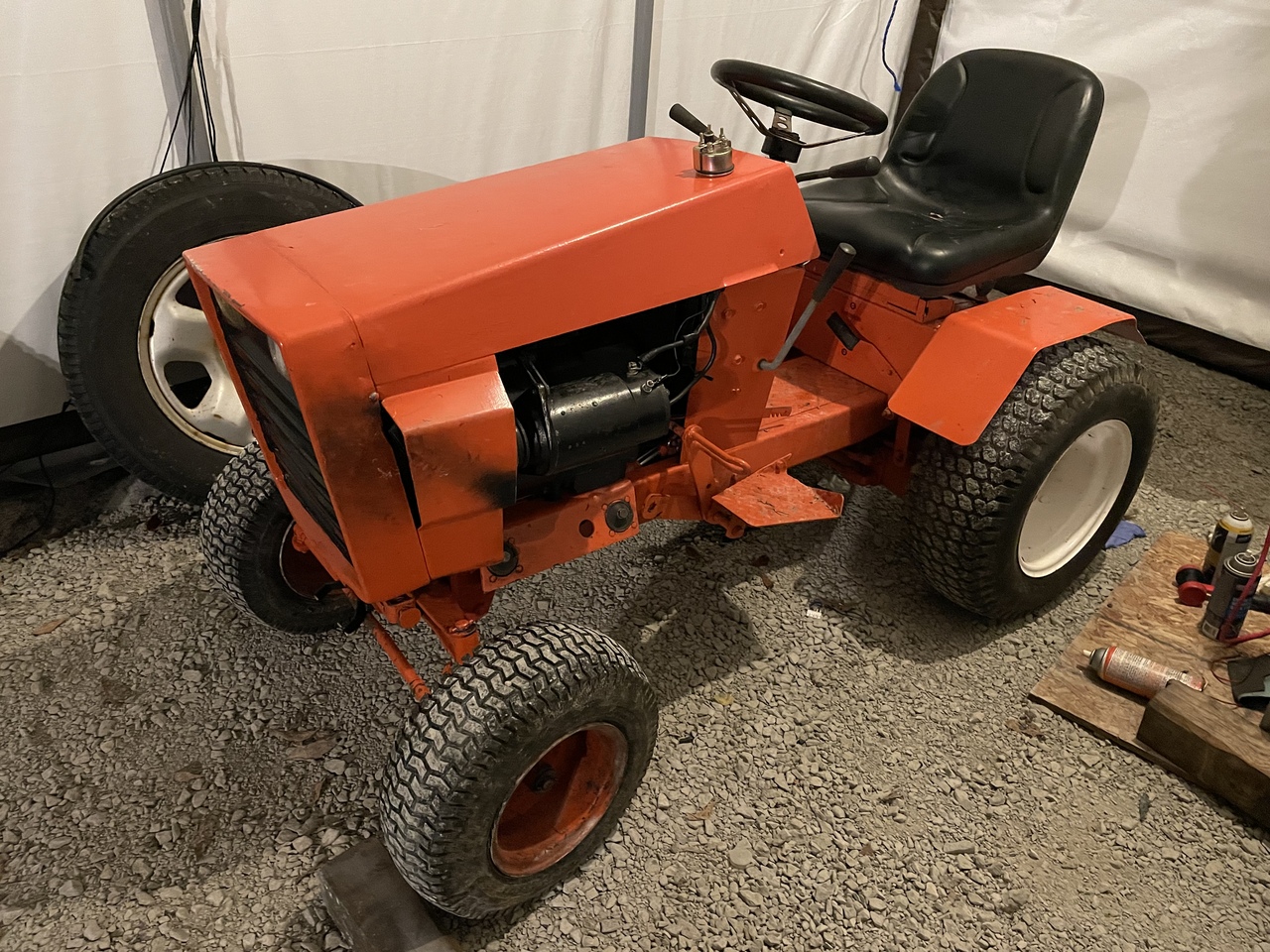 It's not really my restoration. Got this from someone who got it from someone else who apparently was restoring it. It's engine was smoking bad and I rebuilt it. The rebuild thread is in the Kohler engines section. I'm continuing to get this little tractor in shape. Changed the rear gear oil yesterday after some break in action. Also replaced the starter/ generator with a much newer one. But when I wanted to start it today the battery seemed weak. After some troubleshooting it turned out the voltage regulator wasn't working properly so I replaced it tonight with a much newer one. Now I see 14V across the battery. Nice.