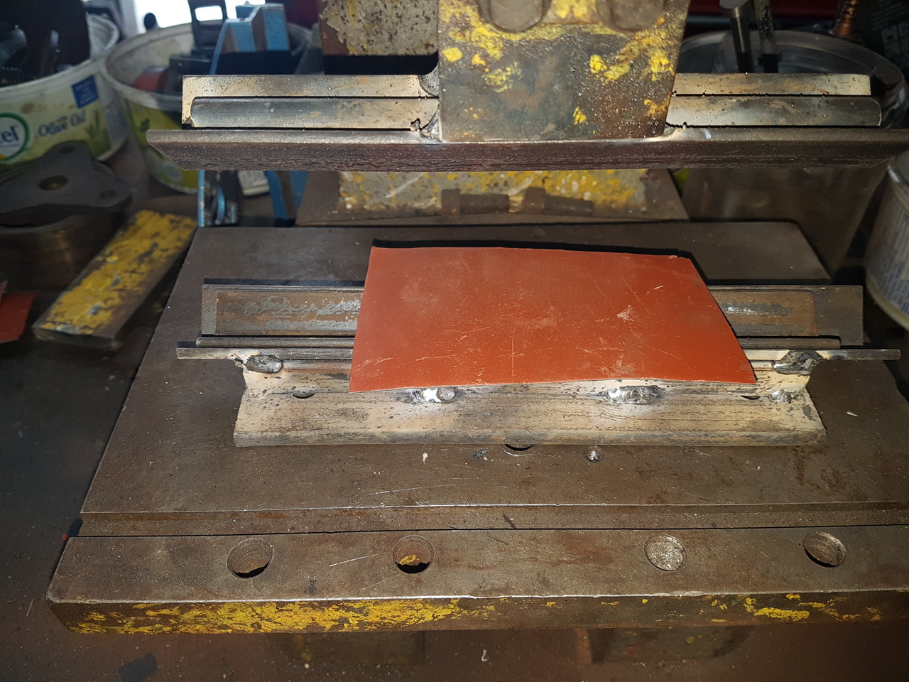 <img src="https://cdn-fsly.yottaa.net/60d0e018d93 ... 60_3_1.jpg" alt="Eastwood Press Brake Attachment"/> These are a nice add on . You can buy or build your own . There is a finger brake version as well . I want to build a multi-funtion floor model press . I have the same problem with space so need one thing to do incorporate many machines .Harry wrote: ↑Thu Jan 02, 2025 9:11 pm I have used my 20 ton press in the past to make bends on sheet metal. I have always wanted to have a sheet metal brake but never wanted to take up the floor space in my small shop for one. Thought about a bench brake but not haven’t purchased one yet. Nice work David on making the bracelets.![]()