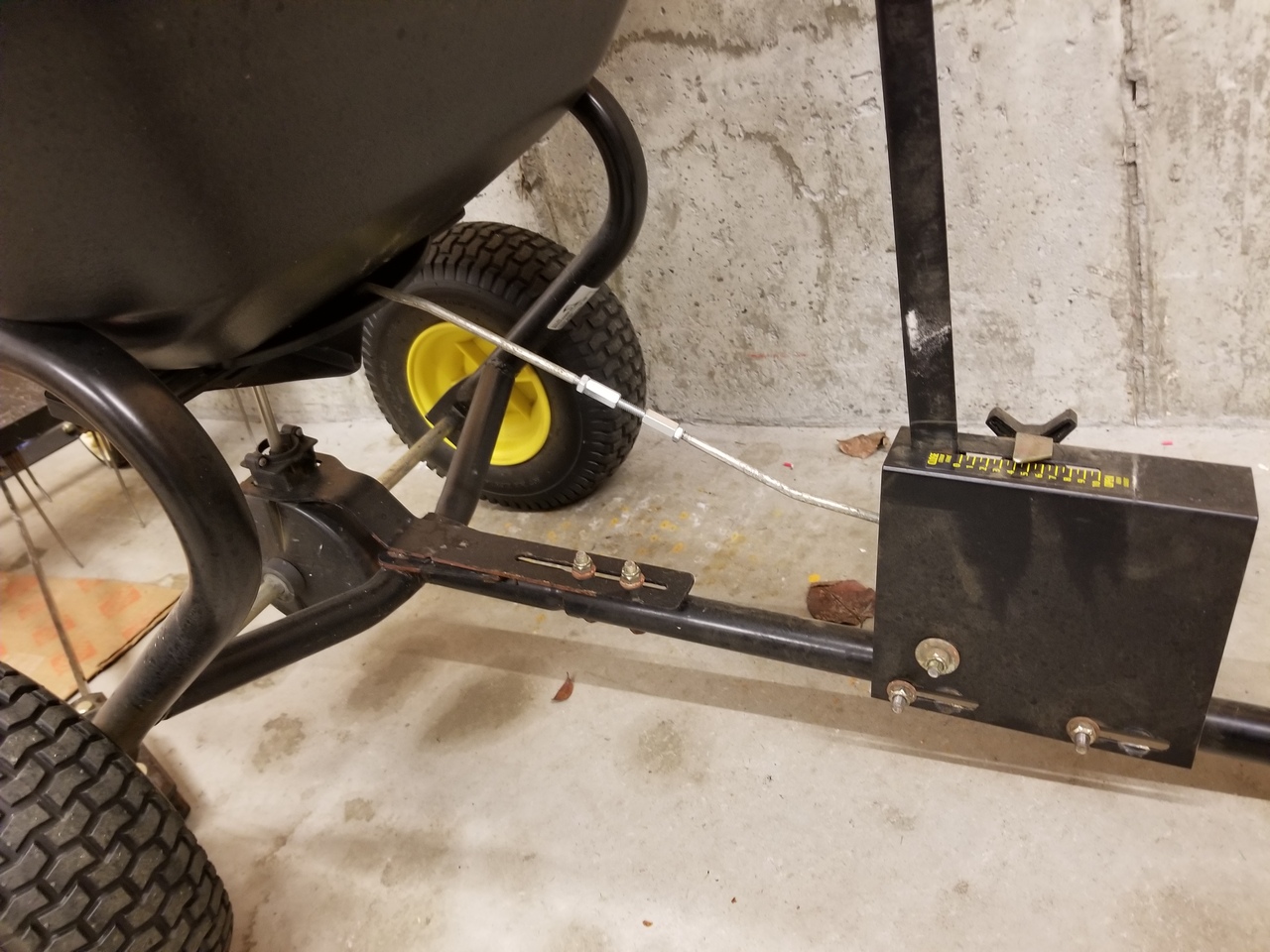 Opening the spreader now requires more movement but leaves more adjustment range. It's also easier to reach the control handle from the tractor seat. TBD if it was actually worth the effort.