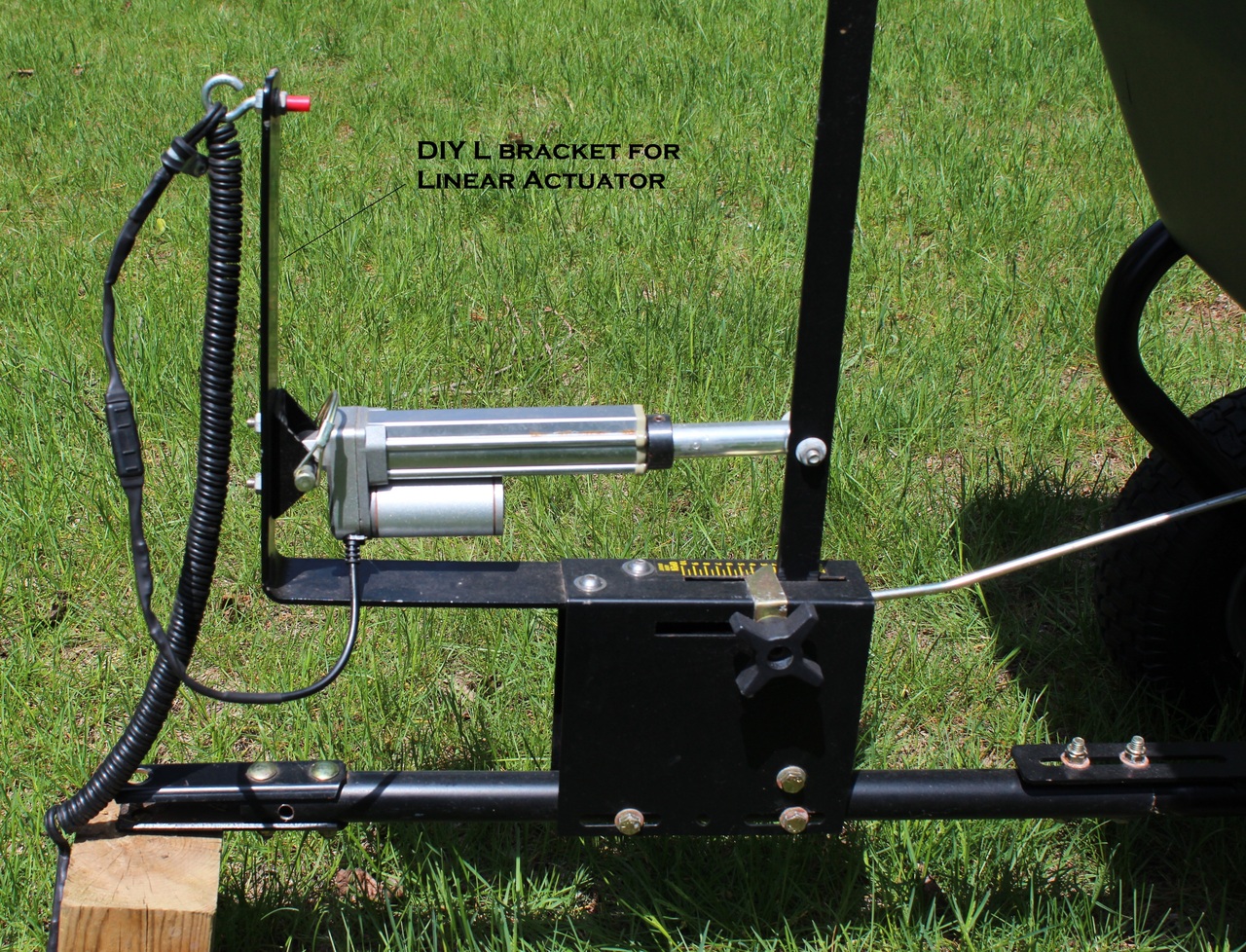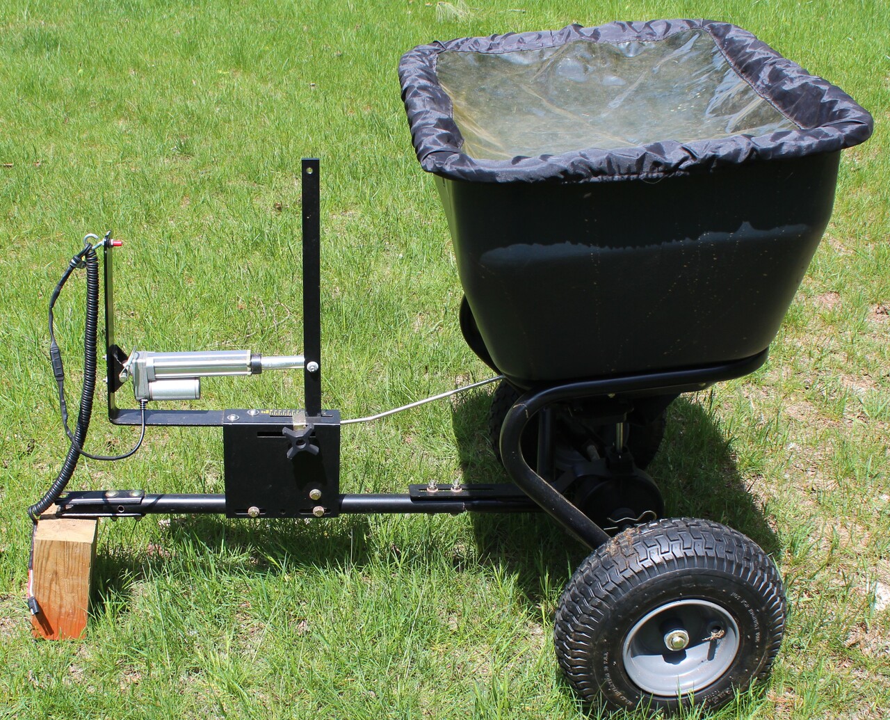 Matt, here is another option. I have put a linear actuator on my Brinly Spreader model BS36BH 175 lb. It saves me from turning around and reaching, but a downside is that the actuator is slower than working the Open/Close lever by hand, but I've gotten used to it. I can still use the original adjustable setting knob for the settings.