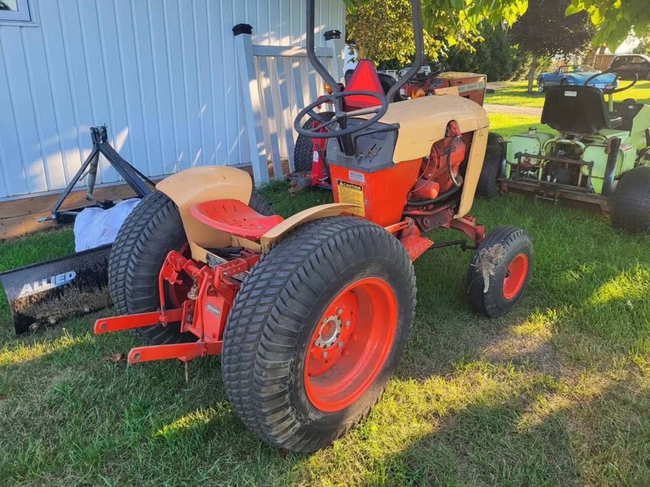 I see an 80's ingersol 2000 series with Preditor engine , 5 to 6 bolt adaptor wheel spacers . 400/4000 series rear wheels . what looks like an 8N spring seat, and mid 40s case hood I think .