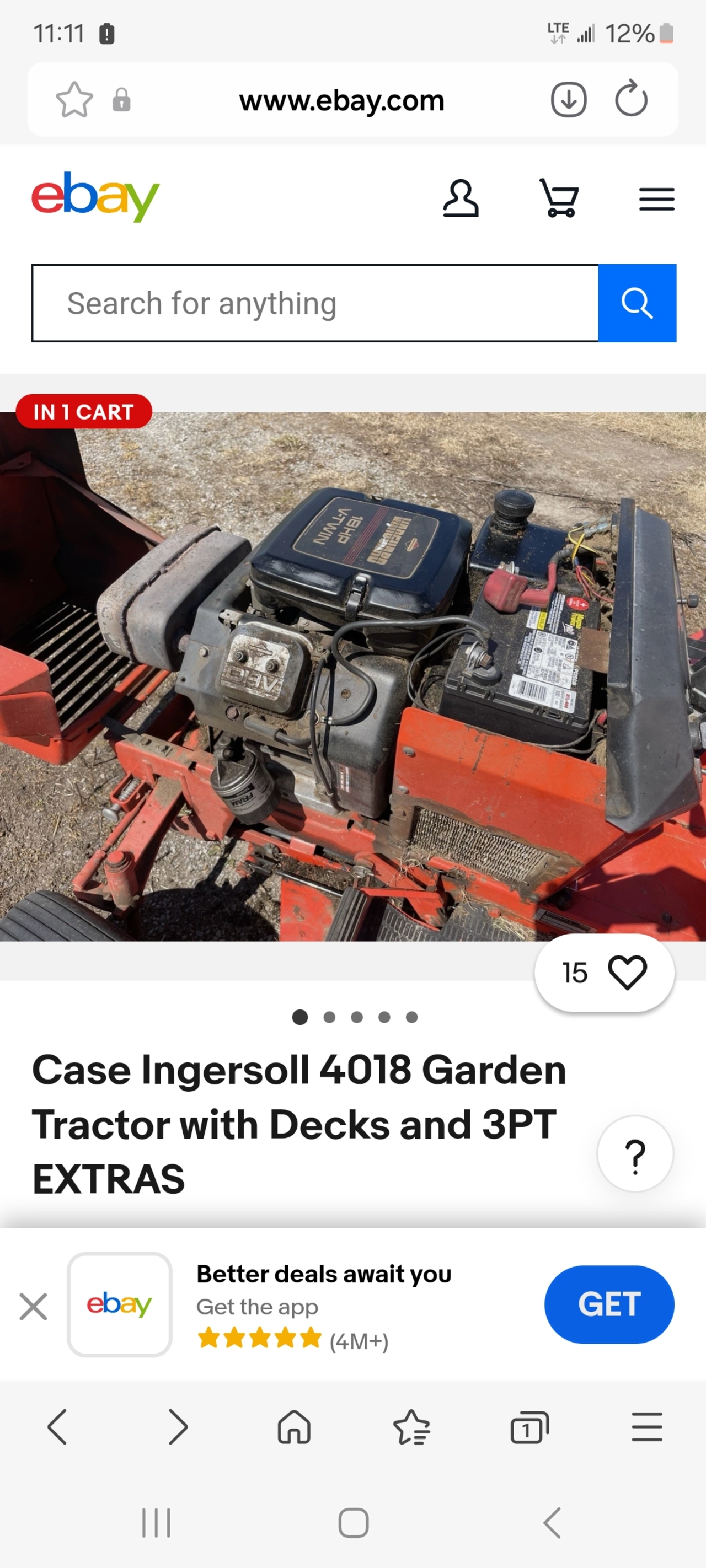 CASH PAYMENT ON PICKUP. You must pickup, no delivery. DO NOT PAY AT CHECKOUT! The Case Ingersoll 4018 Garden Tractor with Decks and 3PT EXTRAS is a hydraulic propelled riding garden tractor with two RM44 44” mower decks with a gasoline engine size of 650 cc.
