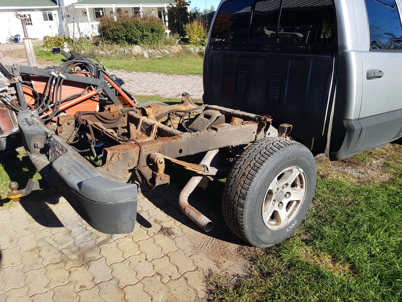2007 with over 335,000 kms on it in the rust belt . I knew it needed repair but din't realise it was this bad until the tail gate start binding on the bumper .