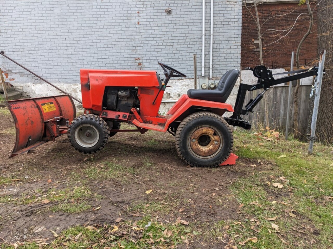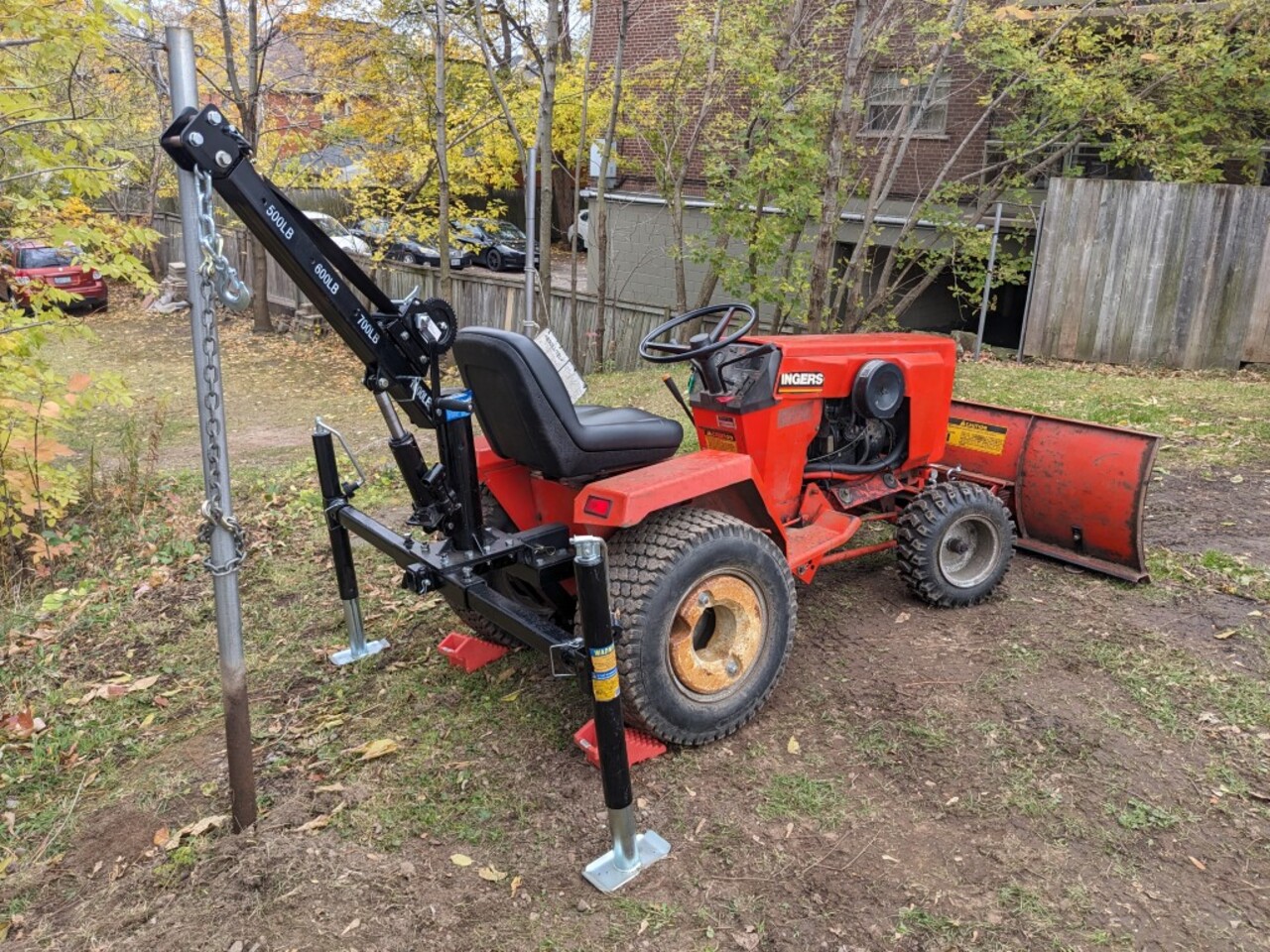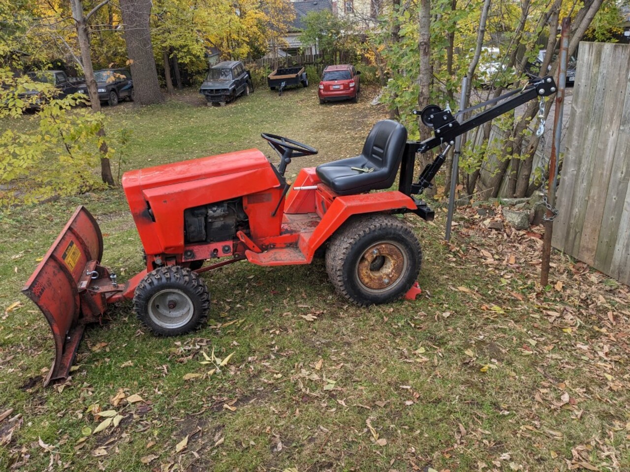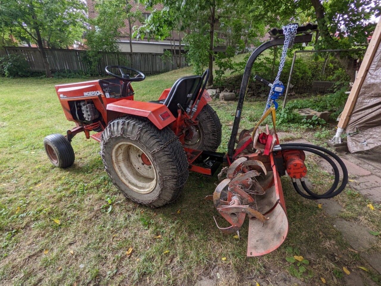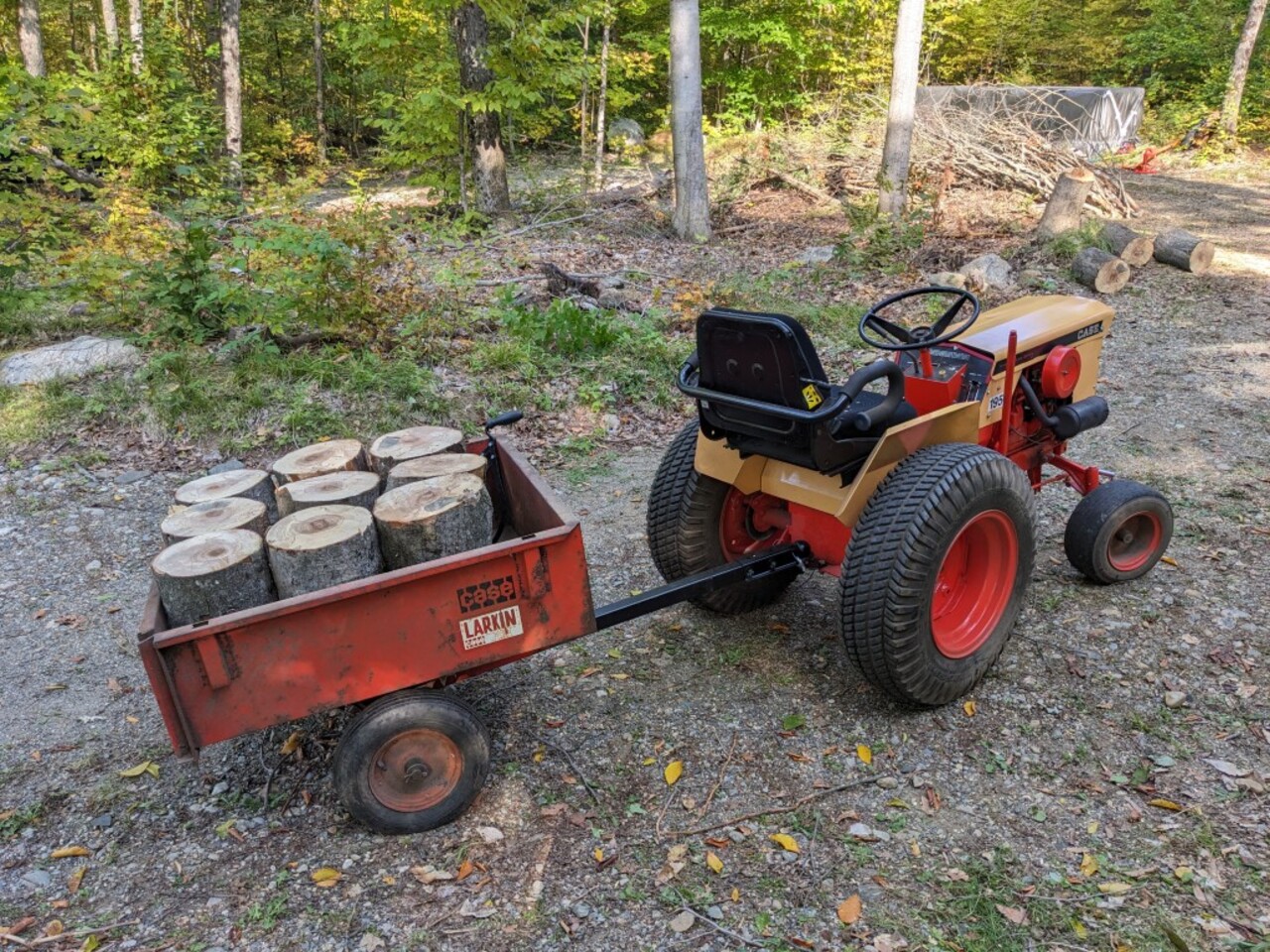 We bought one of these log arches and the matching trailer from Princess when they were on sale last year... When we bought our first Case 446 it came with a bunch of attachments / accessories - and moving that tiller was awkward for one person to move - I combined a small come-along with an old bicycle carrier and used Max to move it around in the yard.