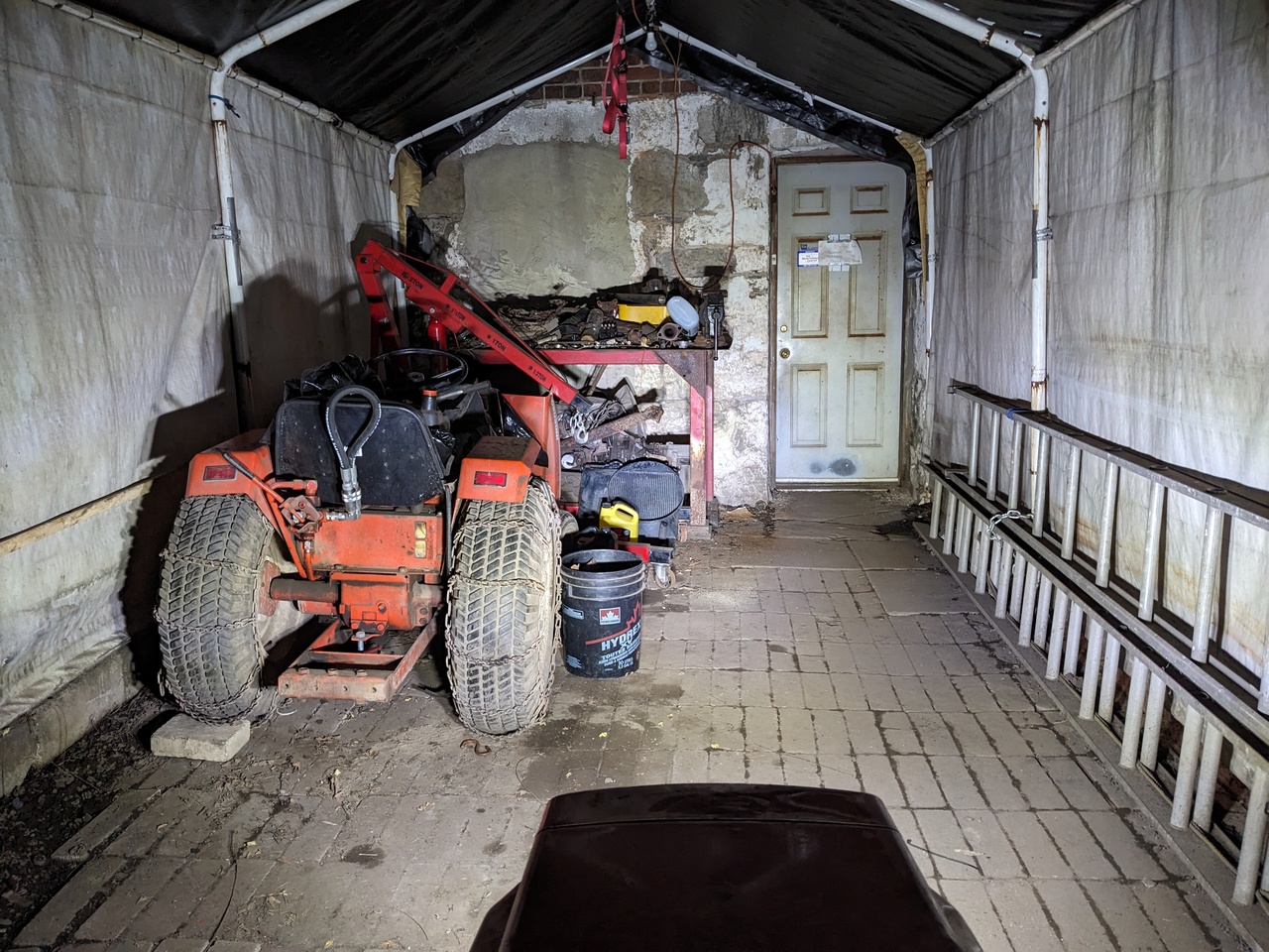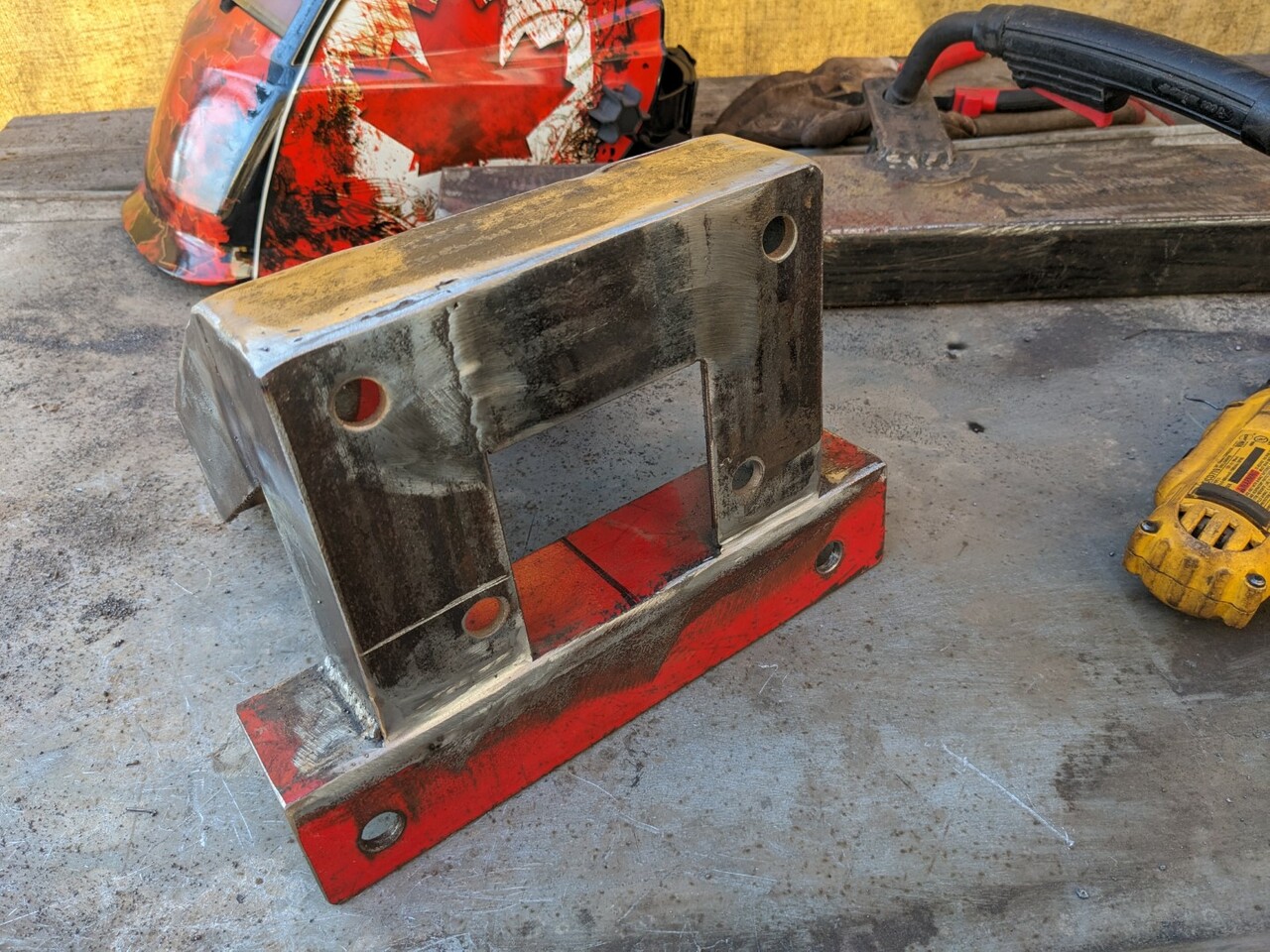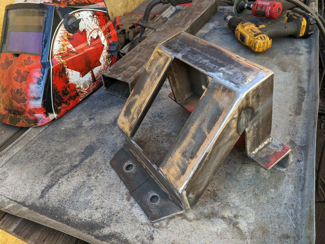 Our 446 (Max) came with a Sleeve Hitch and one of the first things I made for it was an adapter for a 2" receiver that would pin on the sleeve hitch This time I wanted to build something that was more solid, adaptable for things other than just a receiver hitch and would be up and out of the way if I decide to get a sleeve hitch for the 222. Pulled off the little trailer hitch and measured up for mounting points - decided to use the 2 upper (going into/through the frame) and the 2 lower ones started off with a simple box made out of 2" angle iron, with a lip to rest on the one behind the fuel tank cover. then a 2nd piece of angle iron for the two lower mounting bolts... and two diagonal bits to triangulate and brace the whole affair...