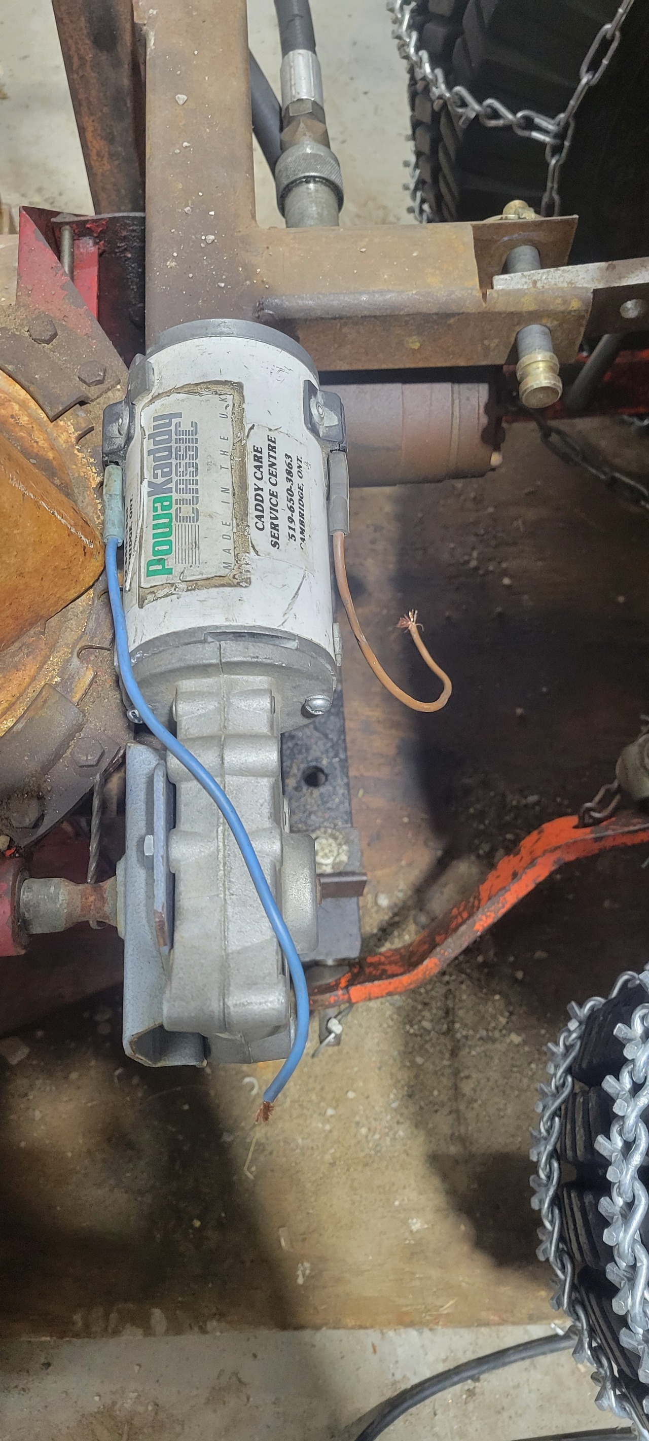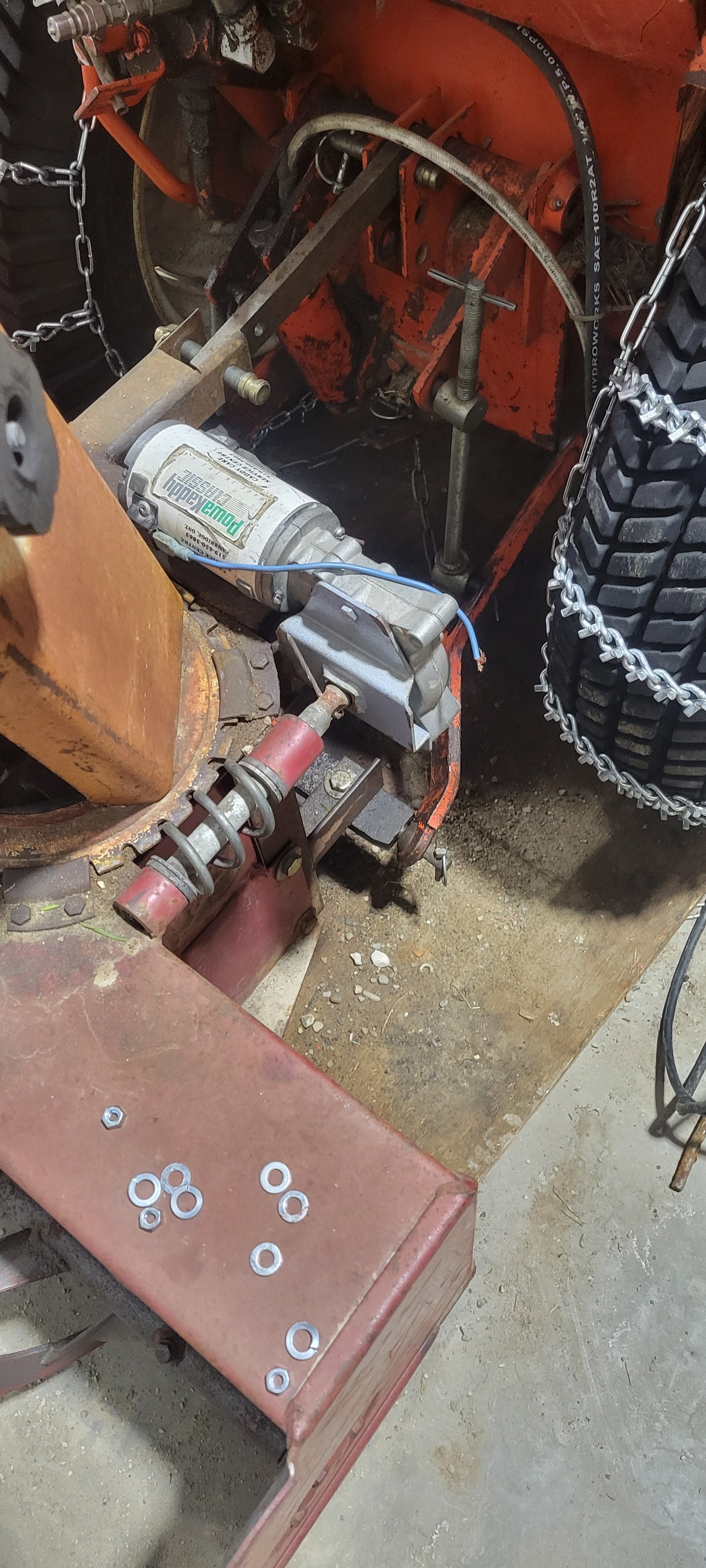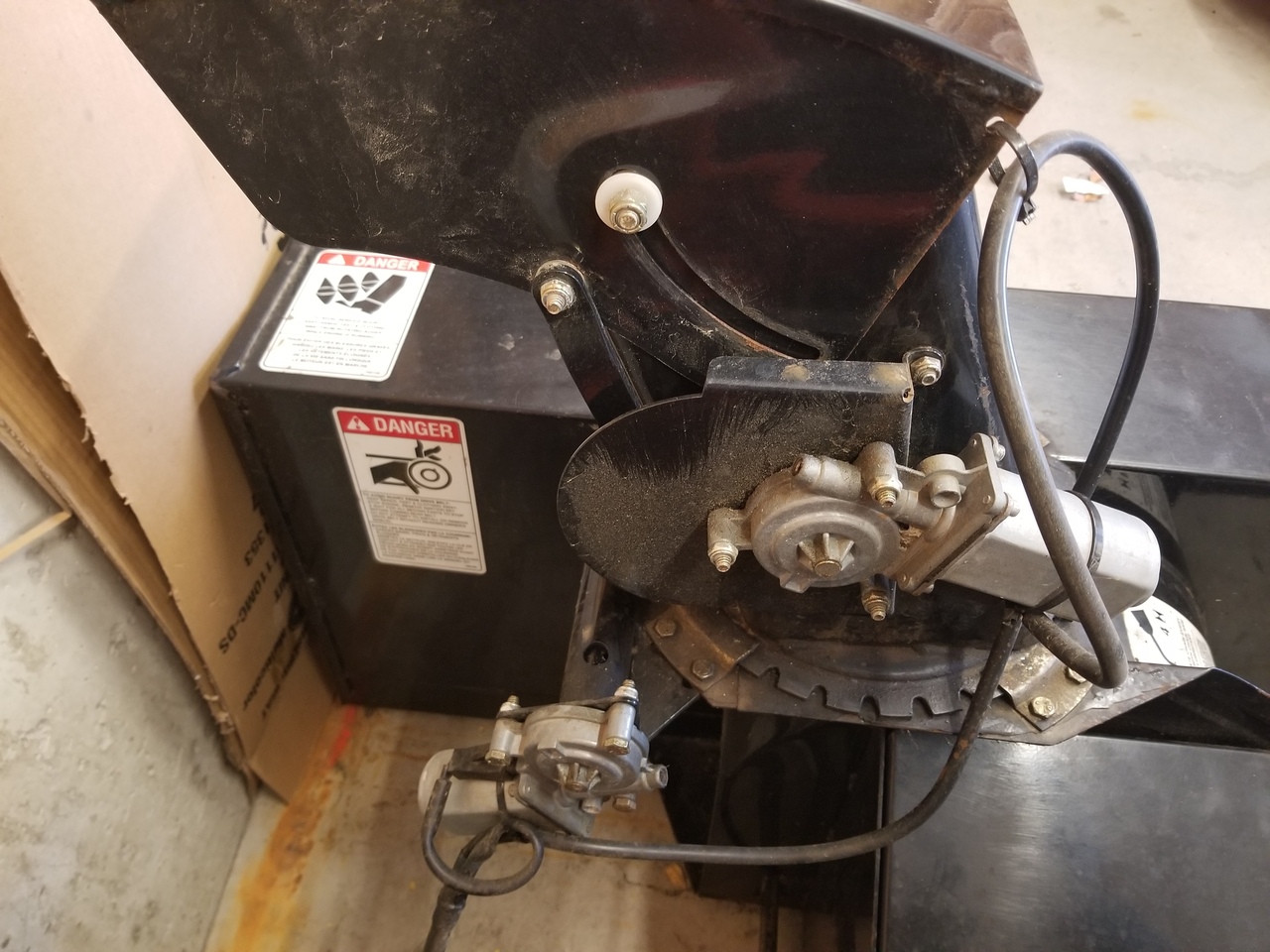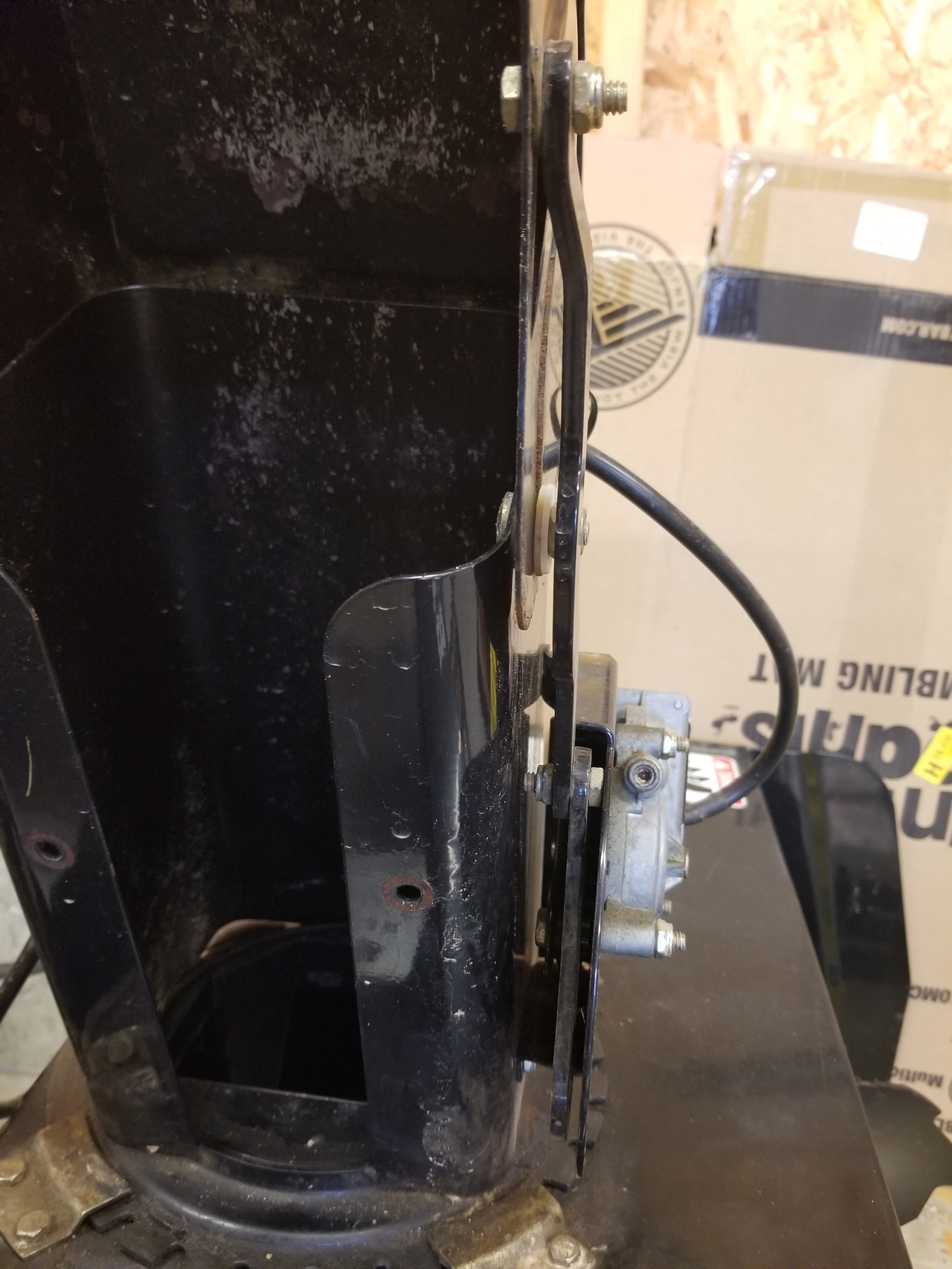 Winter is almost over even if shall flurries are moving through. So why not get a jump start on next winter and mount a golf caddy moter on the spout rotator.
