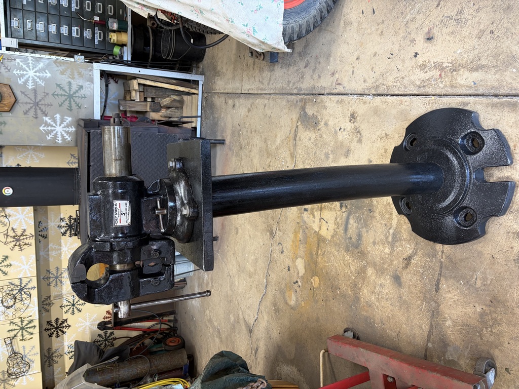 Phase one complete today. I’ll have to do multiple posts as this progresses. This is a movable stand for a large vise or maybe my beverly shear. Instead of mounted on a table the stand will provide access all around what ever I have in the vice. The base is a big tractor weight that I picked up in a bundle deal when i purchased the end cap weights that I installed on the 646. The post is a scrap pipe left over from a job I did for a plating company. It was a hydraulic line that a employee over charged a line. Can you imagine the pressure on this 4” schedule 89 pipe. I cut the flanges off and welded them on another pipe. Then they bent another one. So I did a second one. I took the least bent pipe for the post. The top plate was something that has been on the weld table for years. A sleeve inside the tractor weight goes inside post so no welding on the weight. Top plate was drilled and tapped fir 1/2” bolts. Next post it should be completed.