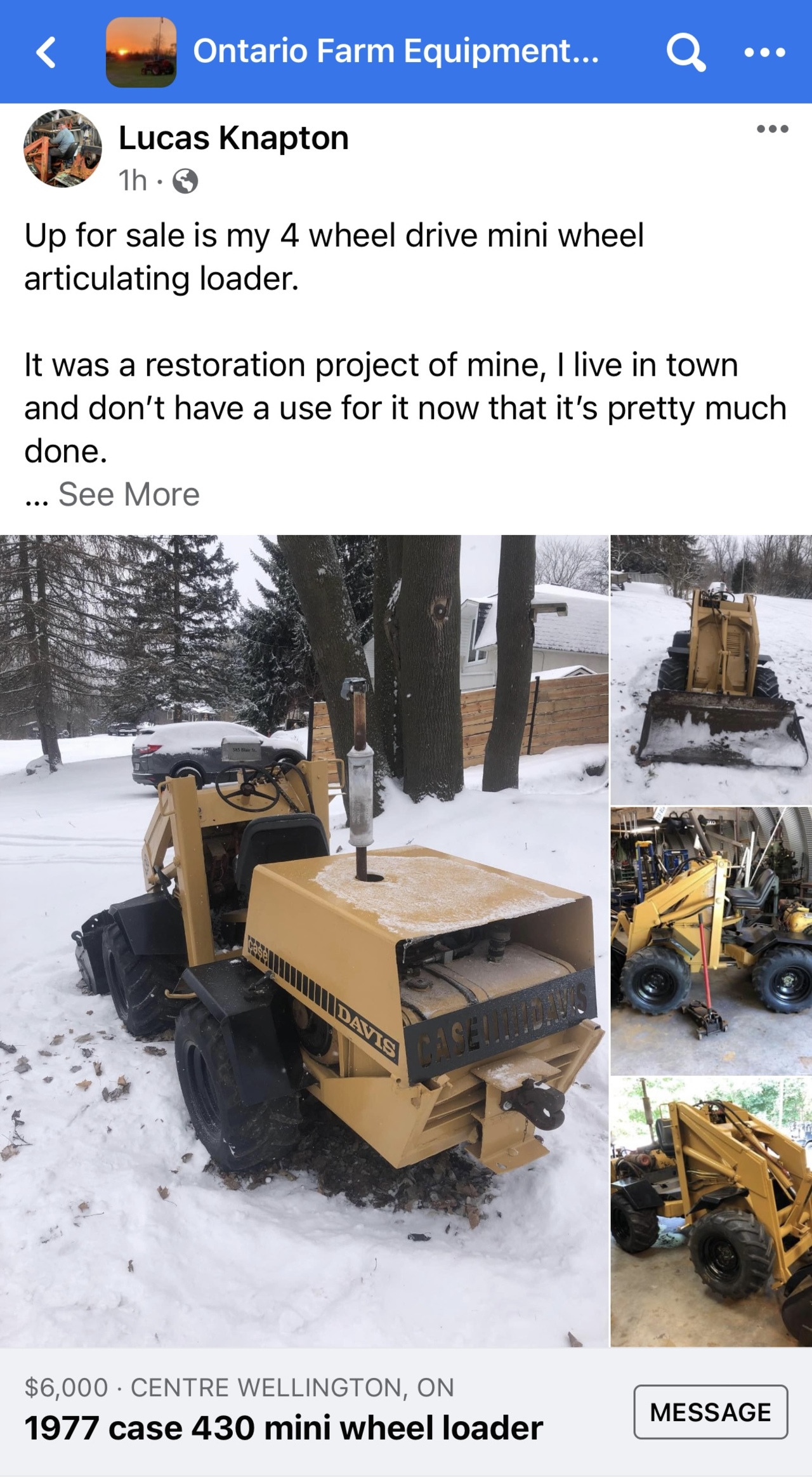 Re: Fergus, ON, 1977 Case 430 loader, $6000