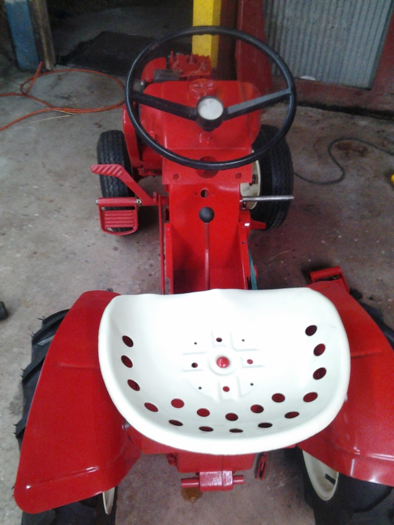 I started working on this tractor a while back and didn't like the way the hood was turning out. Tried to find decent hood. Still haven't found a good one. I finally did find correct seat and other parts. Been setting long enough now needs to be repainted.