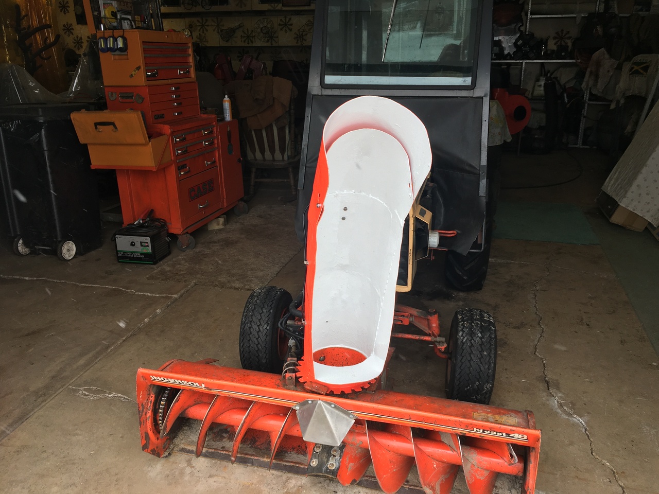 I changed the curve of the chute a bit to help in directing the snow better. I tried again the other day but the snow was very light and it just created a blizzard in front of the tractor.