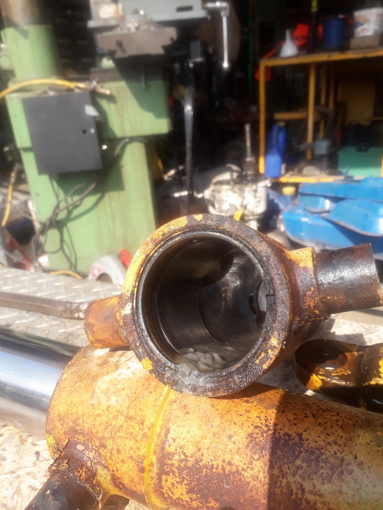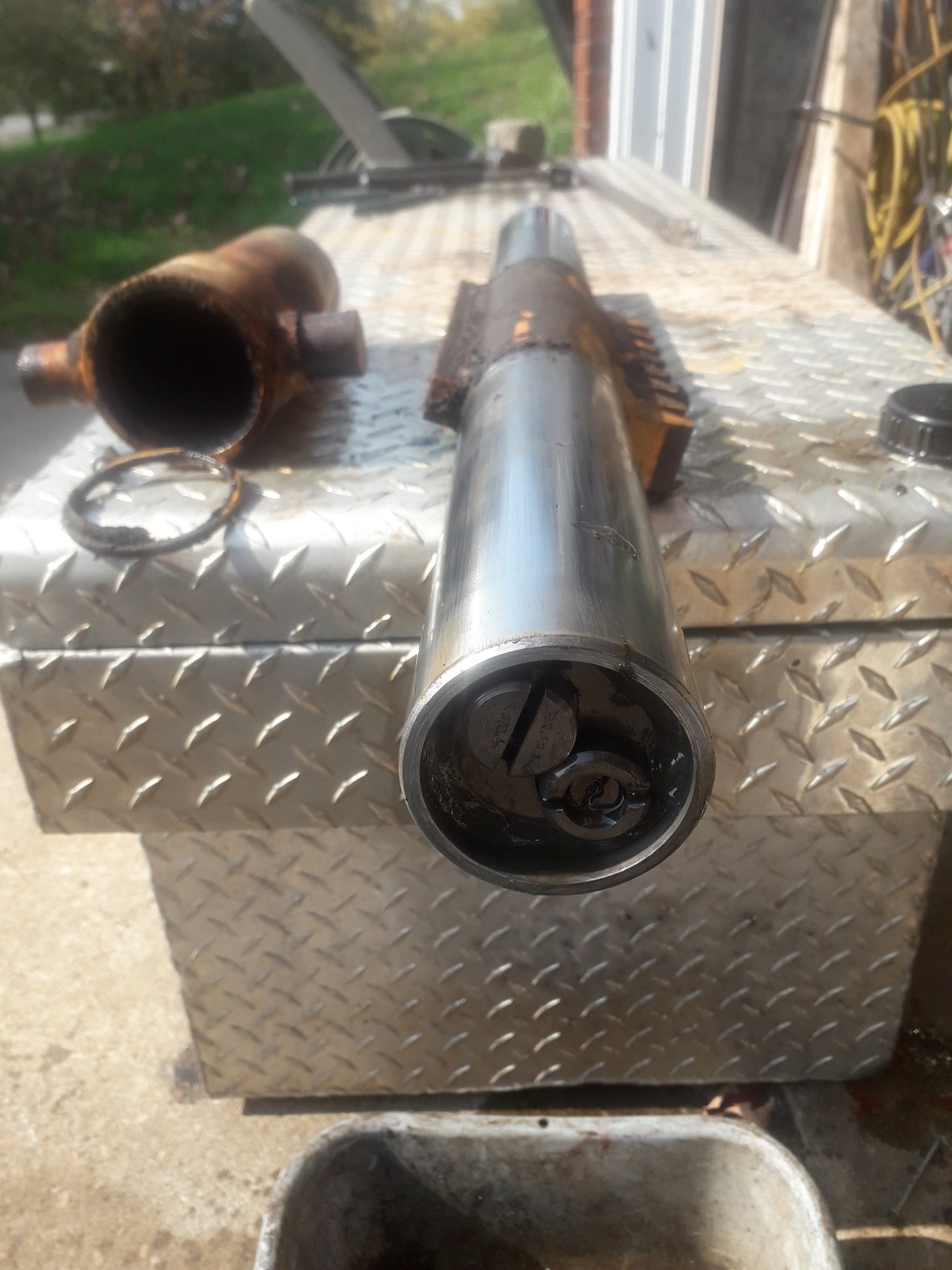 This is what might be in the left hand cylinder another view of the left hand cylinder The right hand cylinder sludge Swing cylinder ram