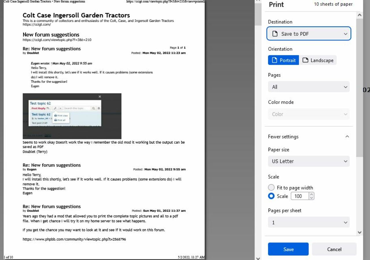 Years ago they had a mod that allowed you to print the complete topic pictures and all to a pdf file. When I get chance I will try it on my home server to see what happens.