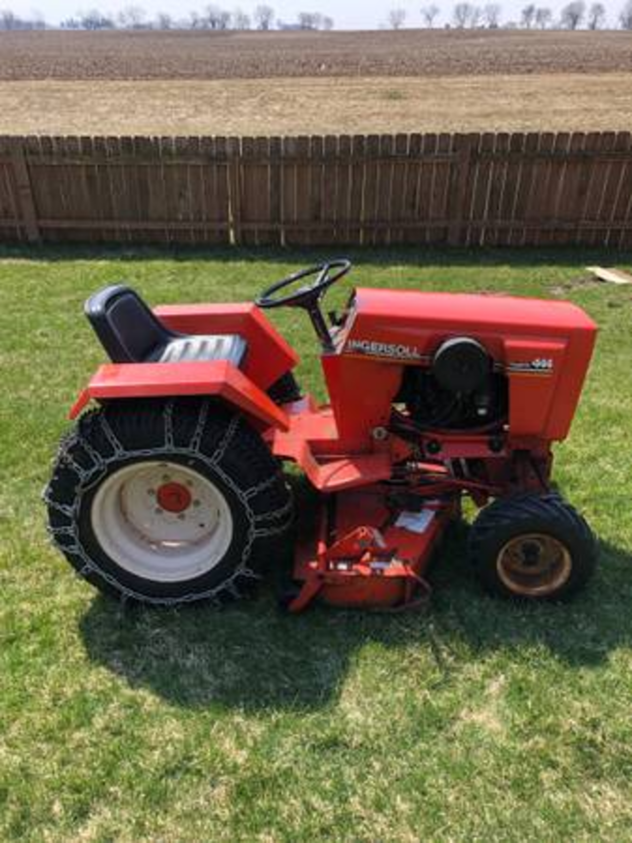 Ingersoll Case 444 garden tractor for sale. Starts and runs good. 44” mower deck. Tractor has factory holding valve. Tire chains included. Fluid filled rear tires. $800