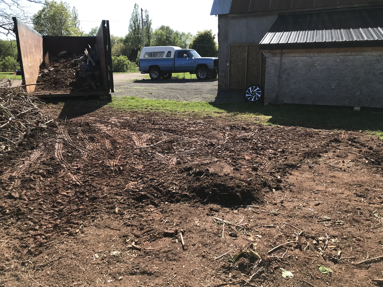 Son had the other heavy equipment bulldozer, hehe, out this evening. Pushed all the bamboo like sticks right into garbage can.