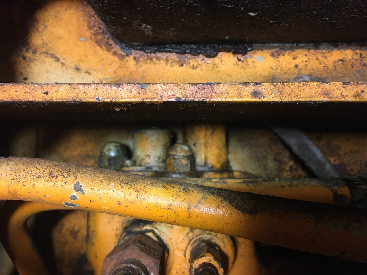 I looked under the 644lbh today and this is what I saw. No way to fit a screw driver with the hoe attached and from underneath no way to get the cap off to fit a screw driver in. It could possibly be a two person job. I believe on the 646 without a hoe I could get a screw driver into the area. With one person behind the tractor turning the screw driver and another underneath the tractor guiding the screw driver it could be accomplished. On the 644lbh there is no access for a screw driver unless i take the hoe off or cut an access hole for the screw driver. I think I'll start with the 646 first and report back with the results.