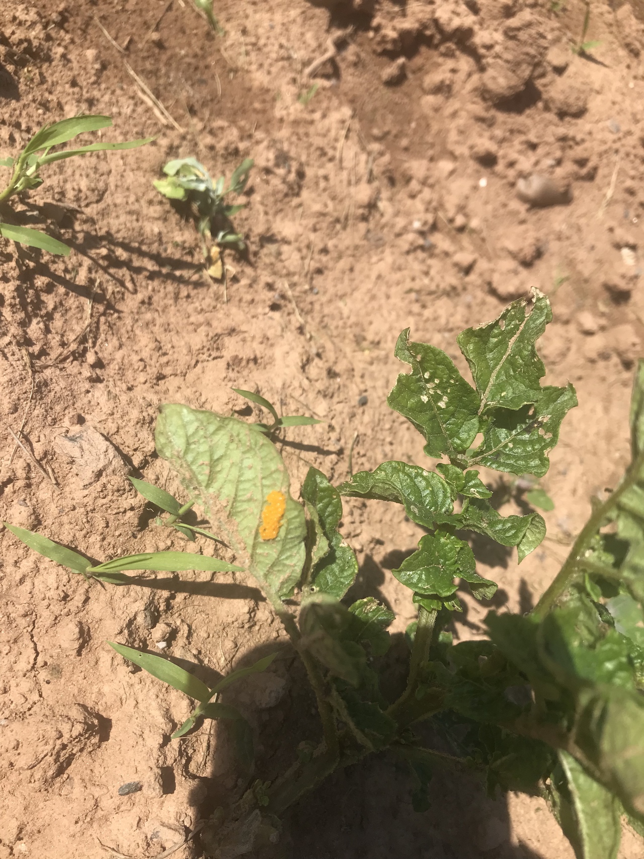 Try this guys . I have used it on cabbage and worked , was going to try on potatoes this year but no need so far . Diatomaceous Earth. I get it from the feed store way cheaper for big bag than plant stores . Using a small broad cast speader in the morning when the dew is on the leaves so it will stick . Dust the plants .