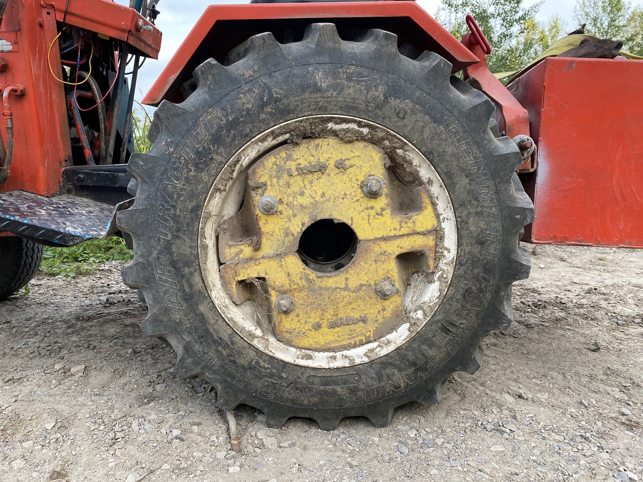 I ran 418 lbs on the front of my 442 a while back, to maximize the lift capacity of my three point.