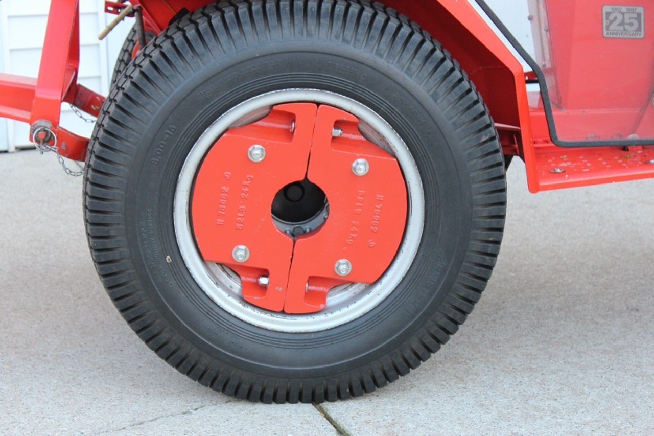 Noel and Eugen - I know, I know. Yes John Deere weights. Here are the JD H78062 Combine Weights on the back wheels, sand blasted, primered and painted Power Red.